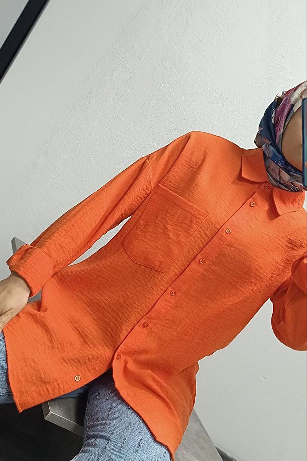 - نام : Kadın Turuncu Düşük Omuz Cepli Oversize Gömlek