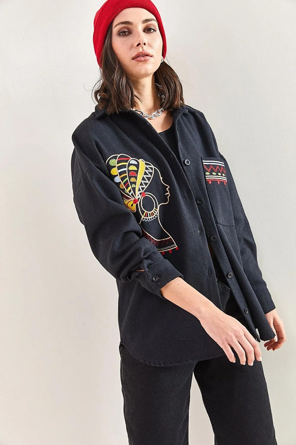 - نام : Kadın Nakış İşlemeli Oversize Gömlek 2061