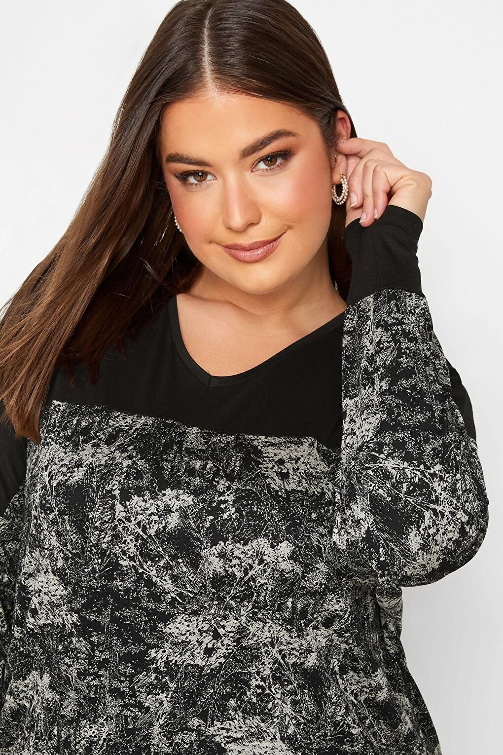 - نام : Büyük Beden Desenli Esnek Kumaş Uzun Kollu Uzun Kesim Bluz 301850