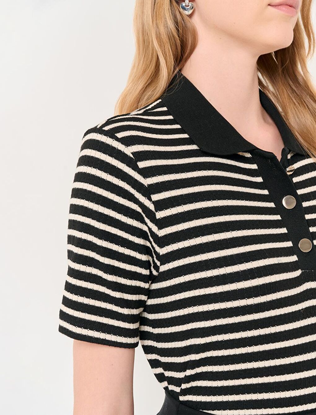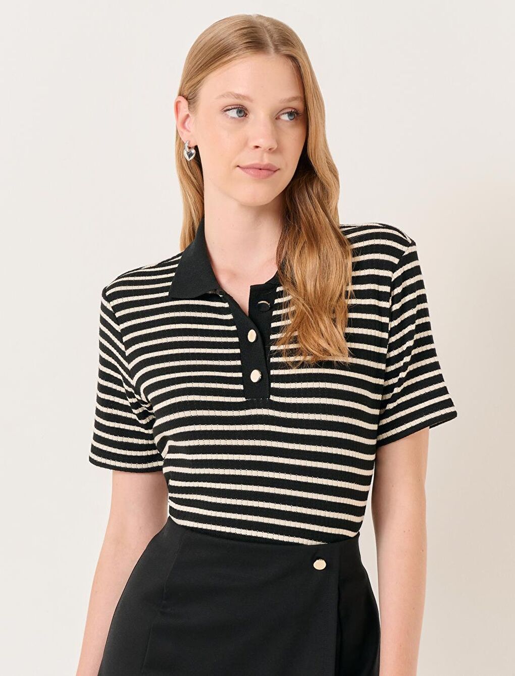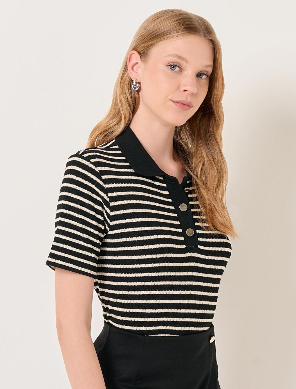 - نام : Siyah Polo Yaka Kısa Kollu Çizgili Bluz