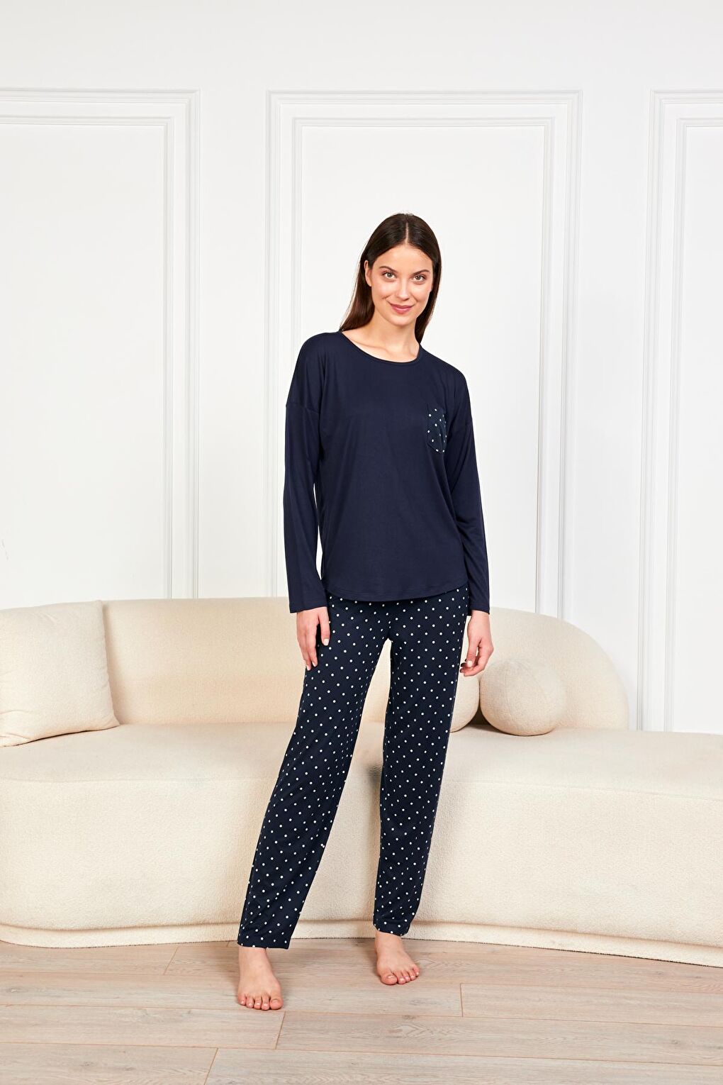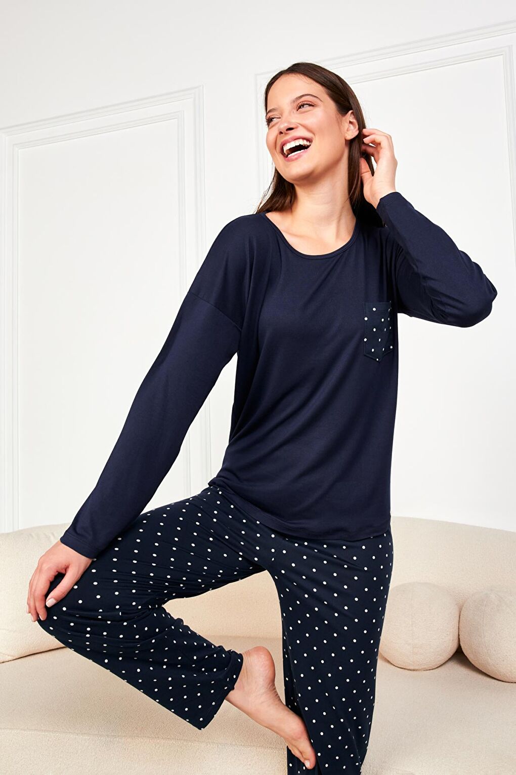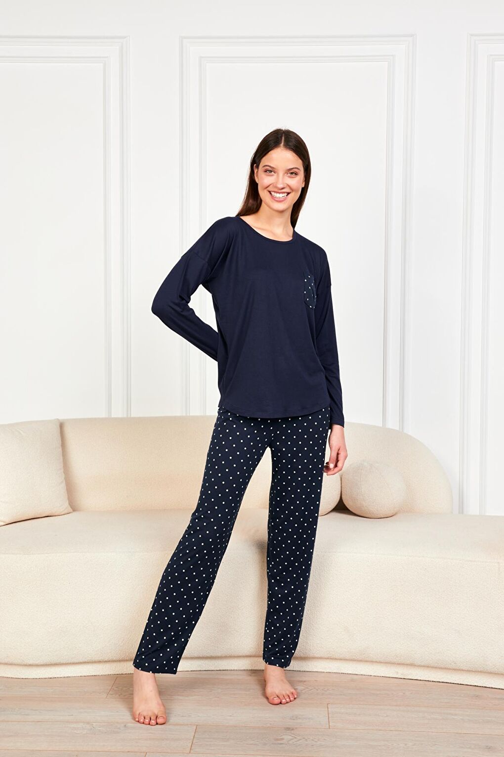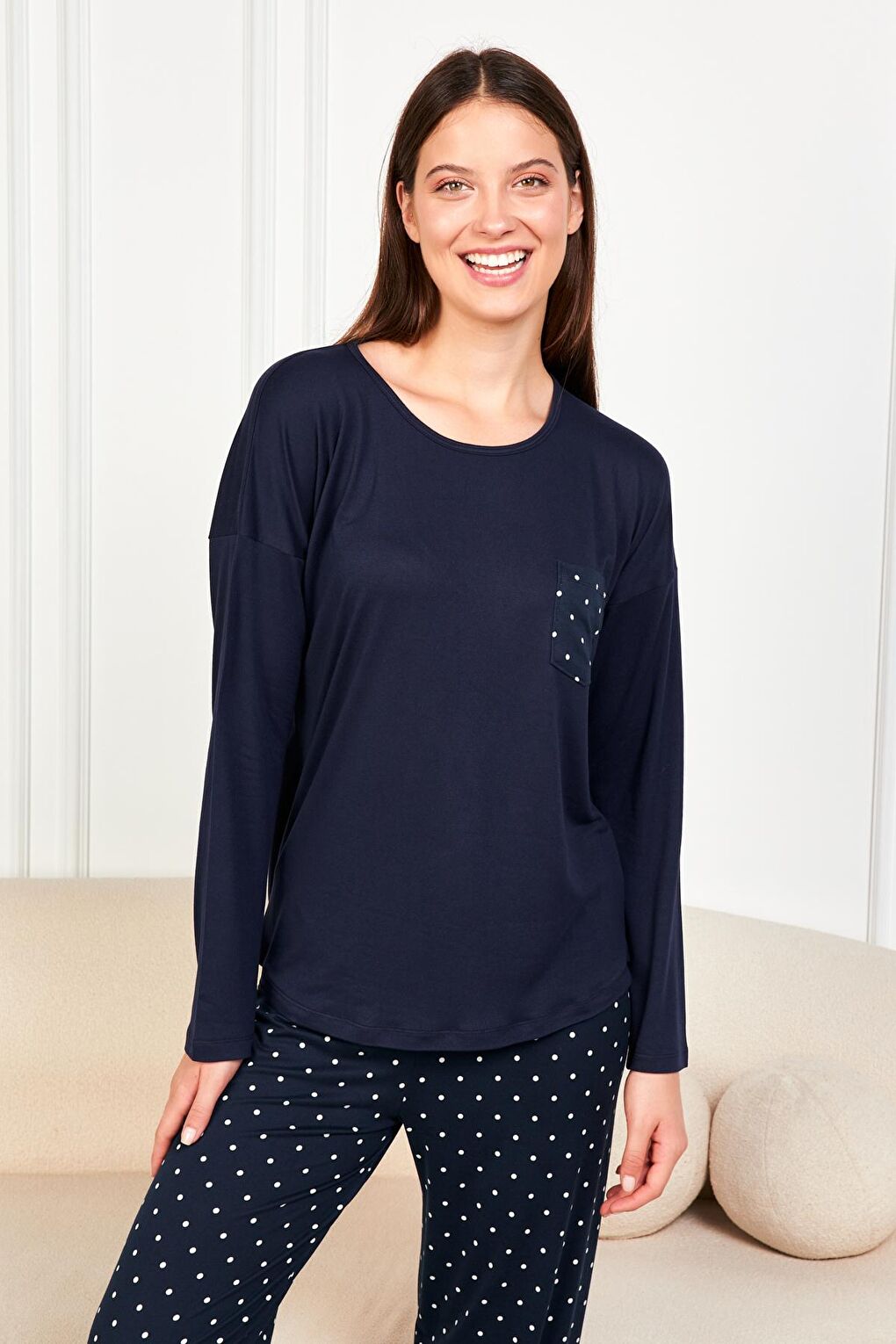 - نام : Kadın Lacivert Puanlı Cepli T.Shrt 2li Tkm 7606 PJM