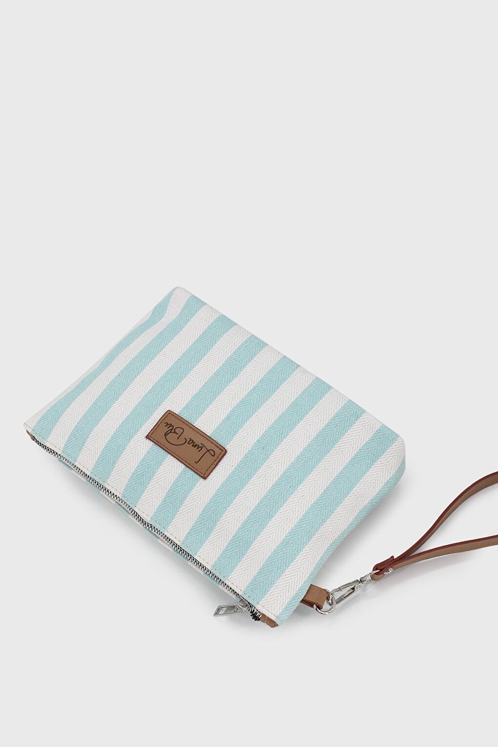 - نام : Kadın Çizgili Keten Clutch Çanta