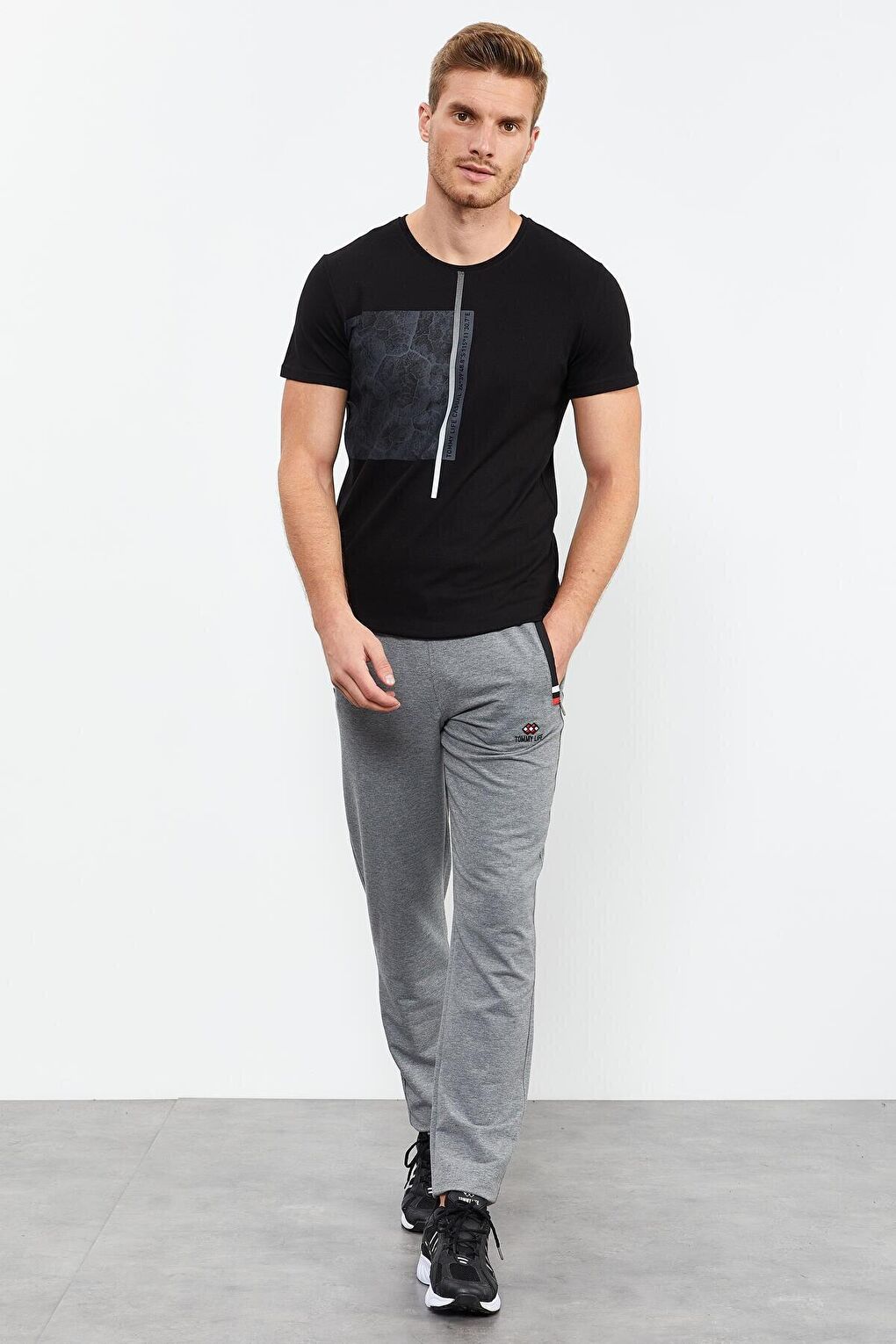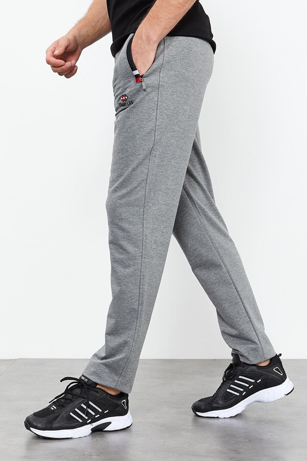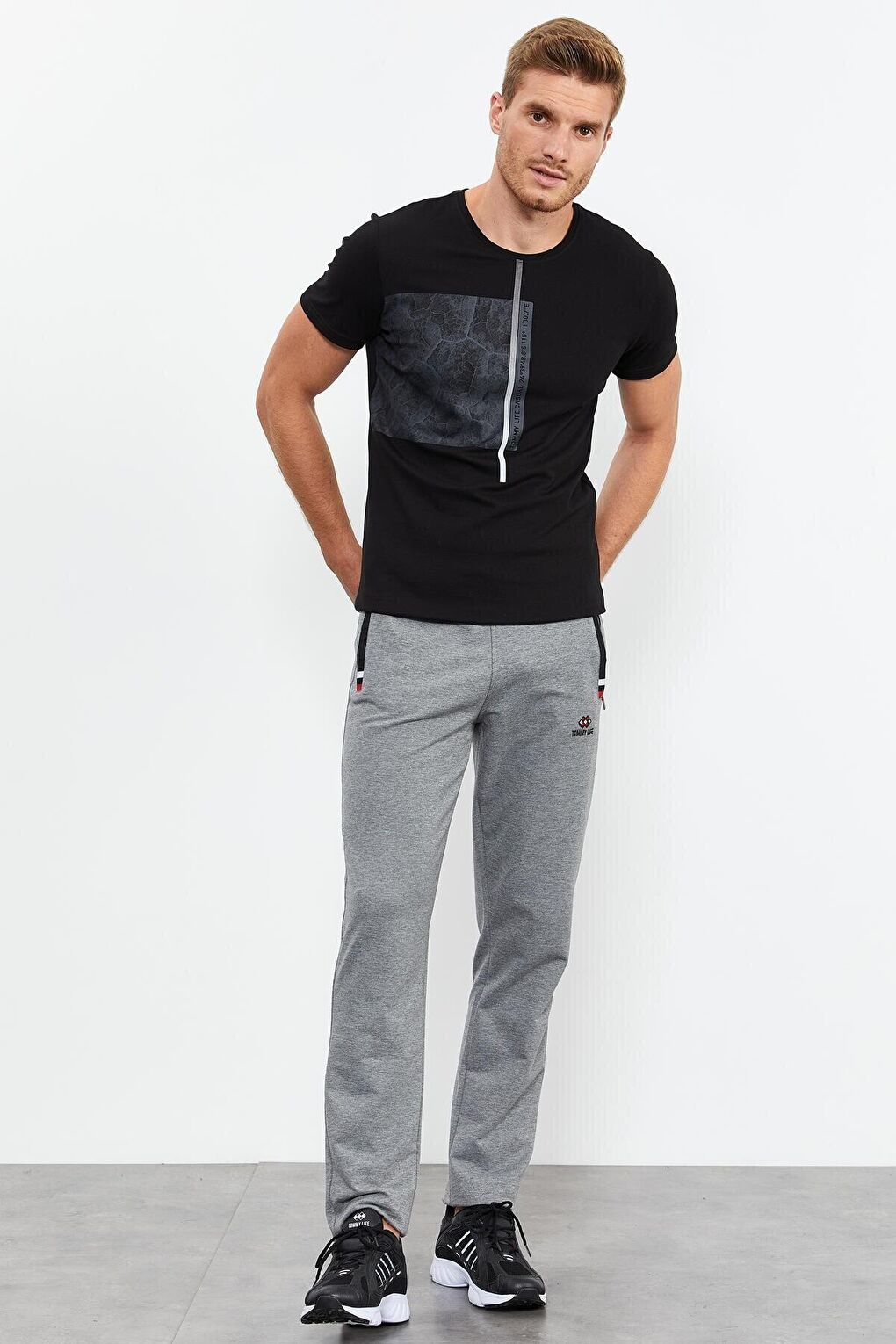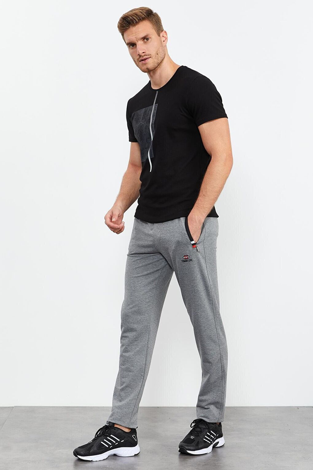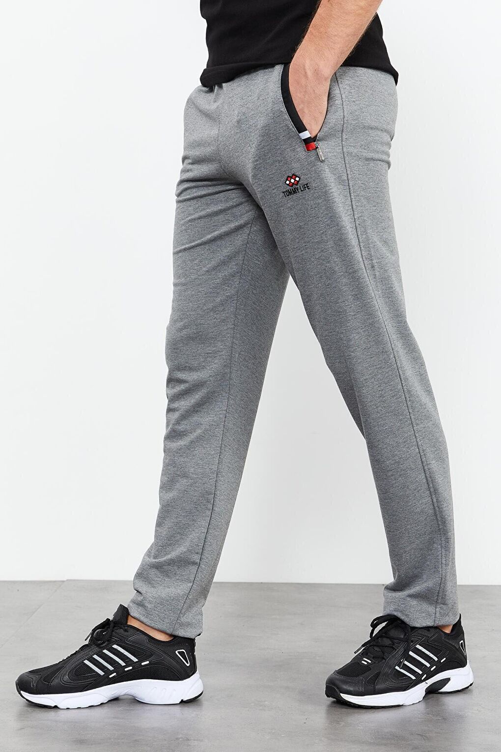 - نام : Gri Melanj - Siyah Fermuar Cepli Dar Kalıp Klasik Paça Erkek Eşofman Alt - 84649