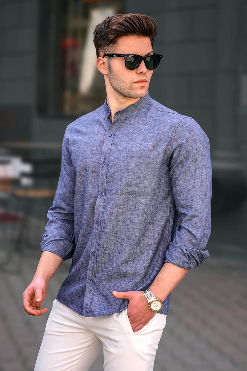 - نام : Erkek Keten Görünümlü Düz Uzun Kollu Gömlek 5548