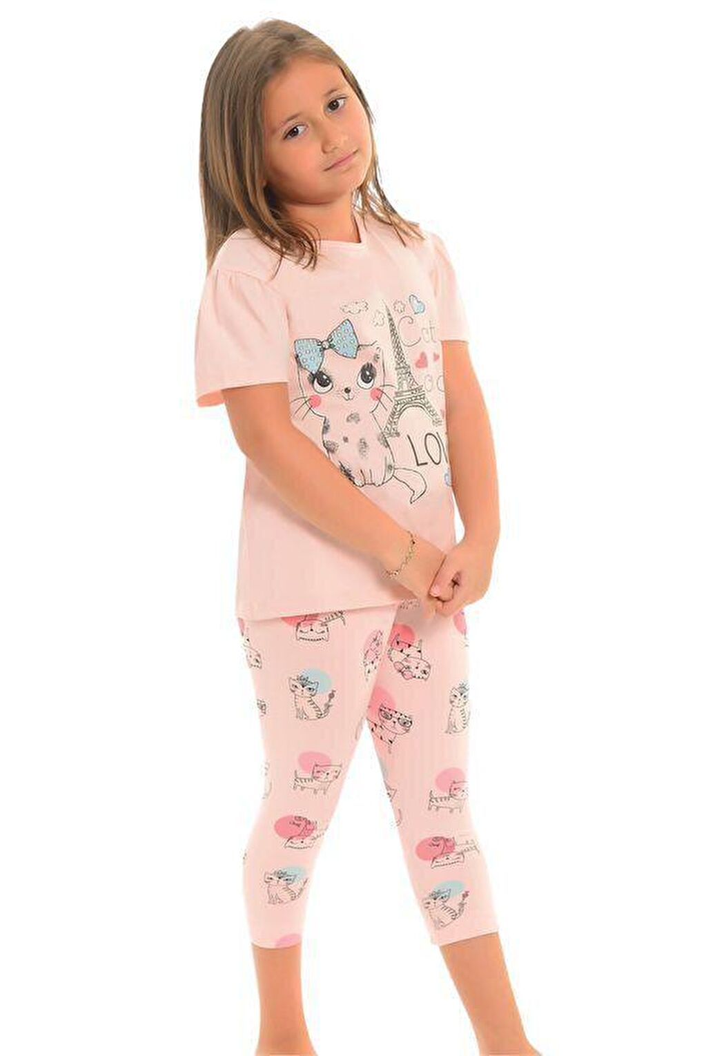 - نام : Pamuklu Kısa Kollu Desenli Taytlı Kız Çocuk Pijama Takım
