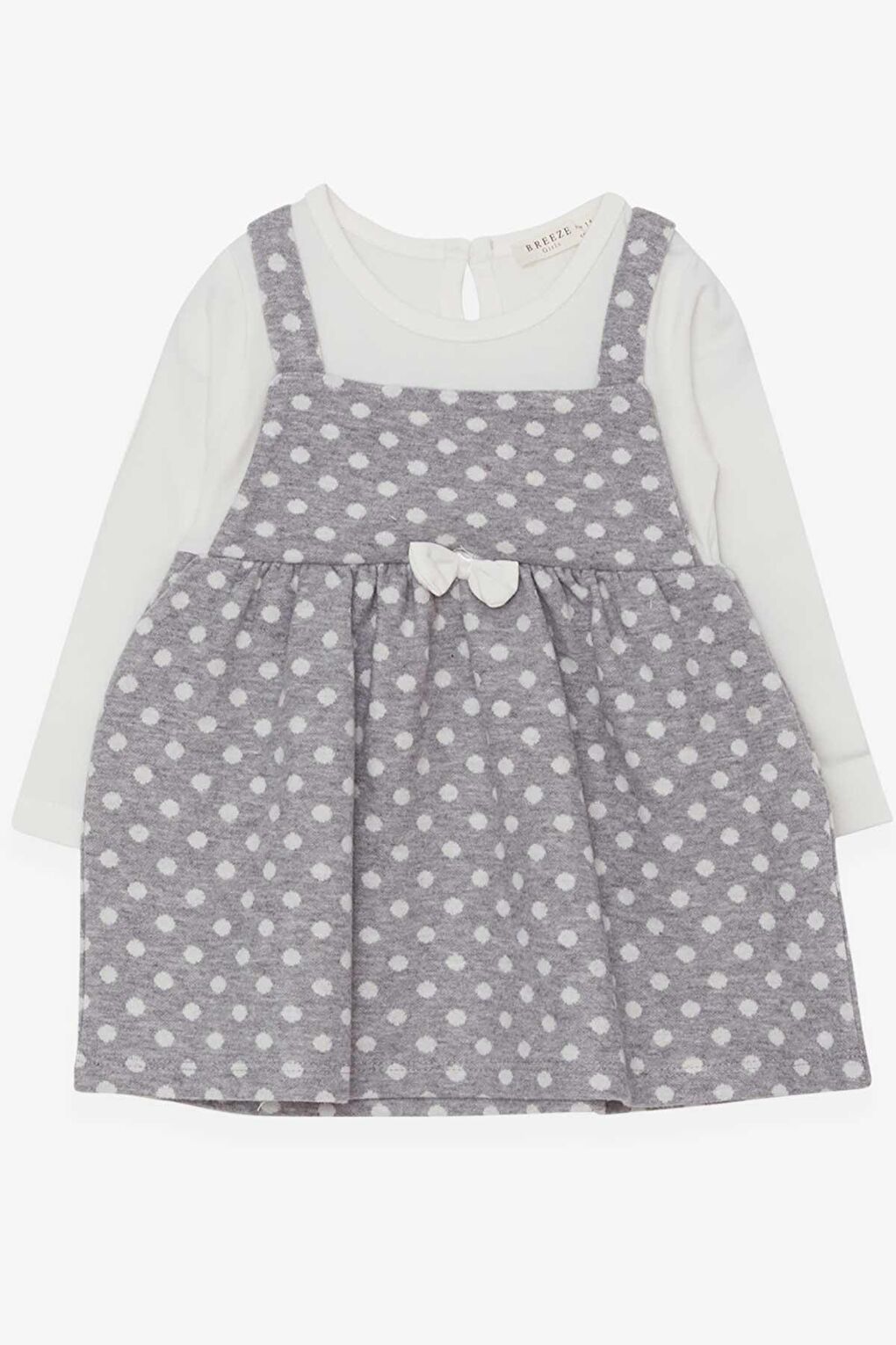 - نام : Kız Çocuk Uzun Kollu Elbise Fiyonklu Puantiye Desenli Açık Gri (1.5-5 Yaş)