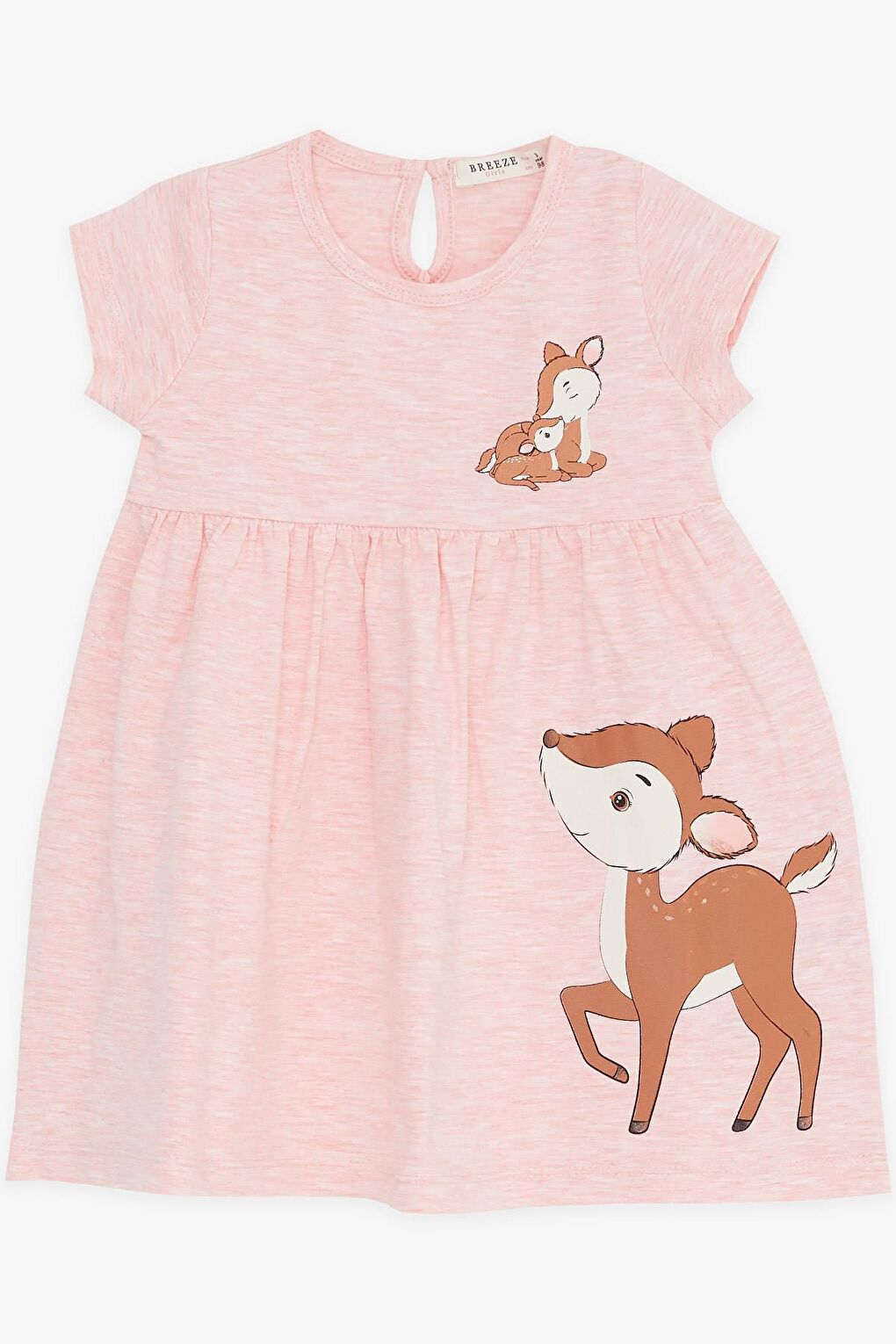 - نام : Kız Çocuk Elbise Sevimli Ceylan Baskılı Somon Melanj (1.5-5 Yaş)