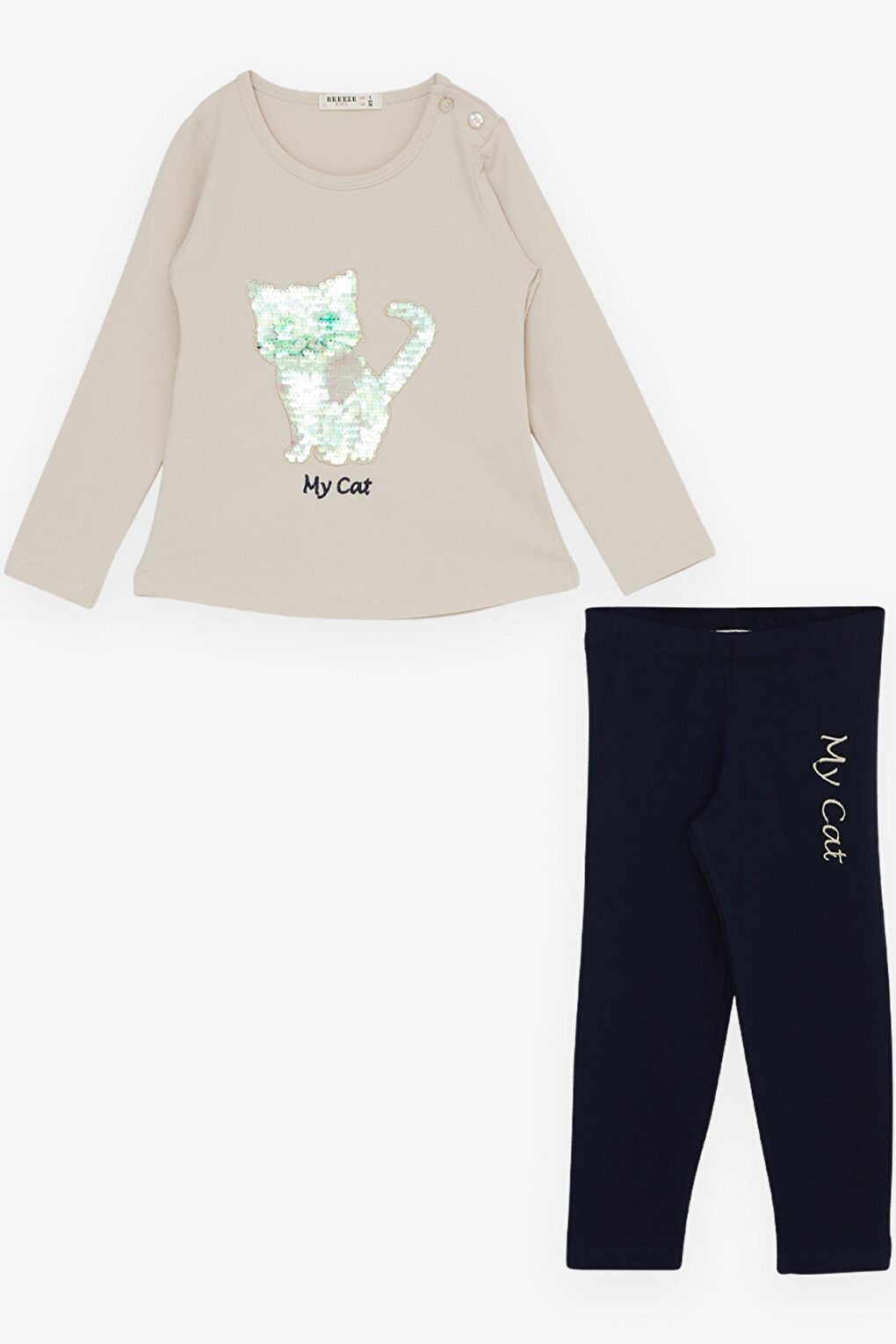 - نام : Kız Bebek Taytlı Takım Pullu Kedicik Baskılı Nakışlı Bej (1.5-5 Yaş)