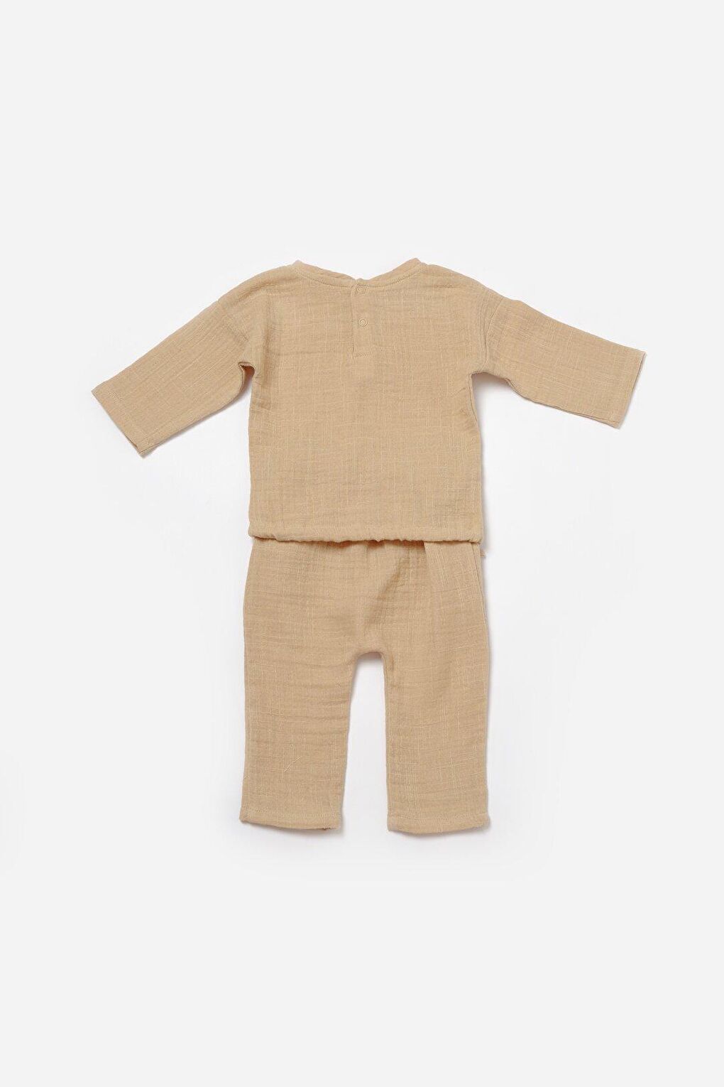 خرید اینترنتی ست لباس راحتی نوزادی دخترانه بژ برند BabyCosy Organic Wear CSYM7026