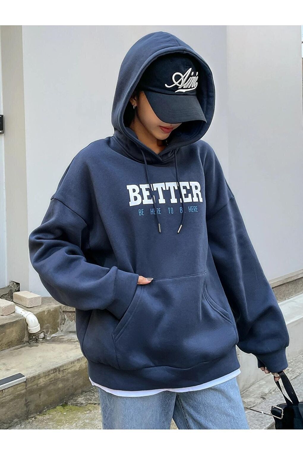 - نام : Kadın LACİVERT Better Baskılı Oversize Sweatshirt