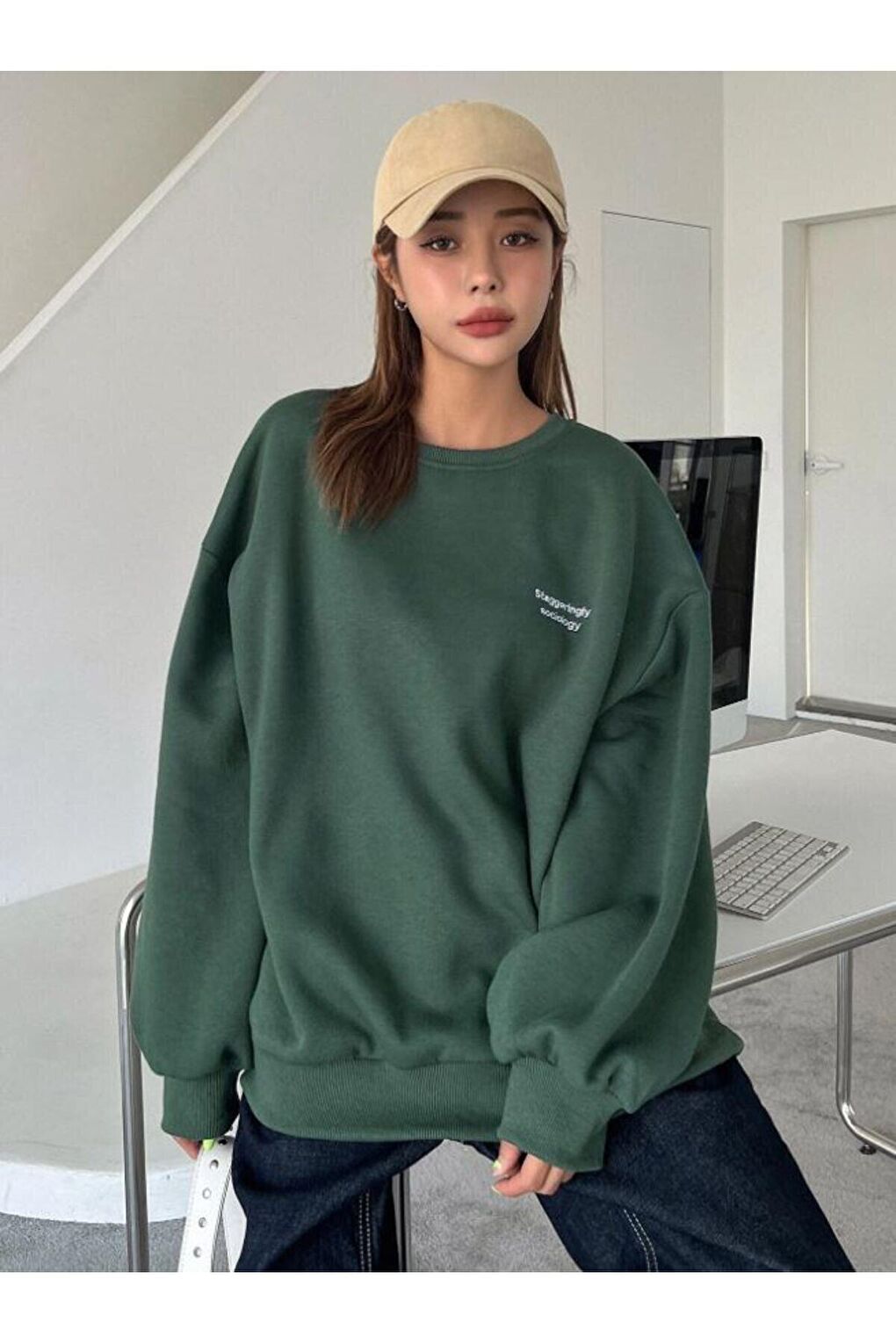 - نام : Kadın YEŞİL Staggertly Baskılı Bisiklet Yaka Sweatshirt