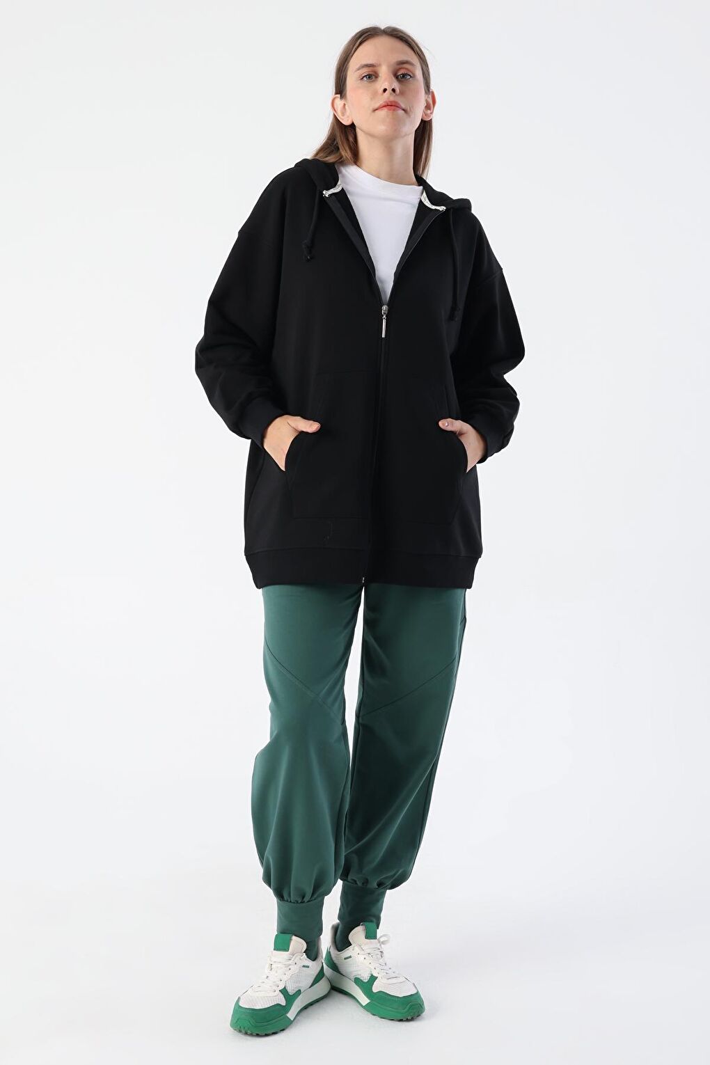 - نام : Siyah Kanguru Cepli Oversize Sweat Hırka