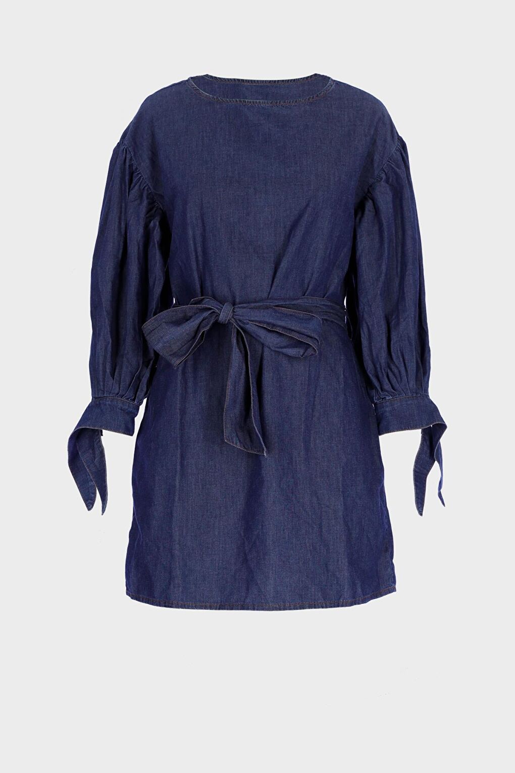 - نام : Koyu Mavi Kolu Büzgülü İnce Mini Jean Elbise C 4676-053