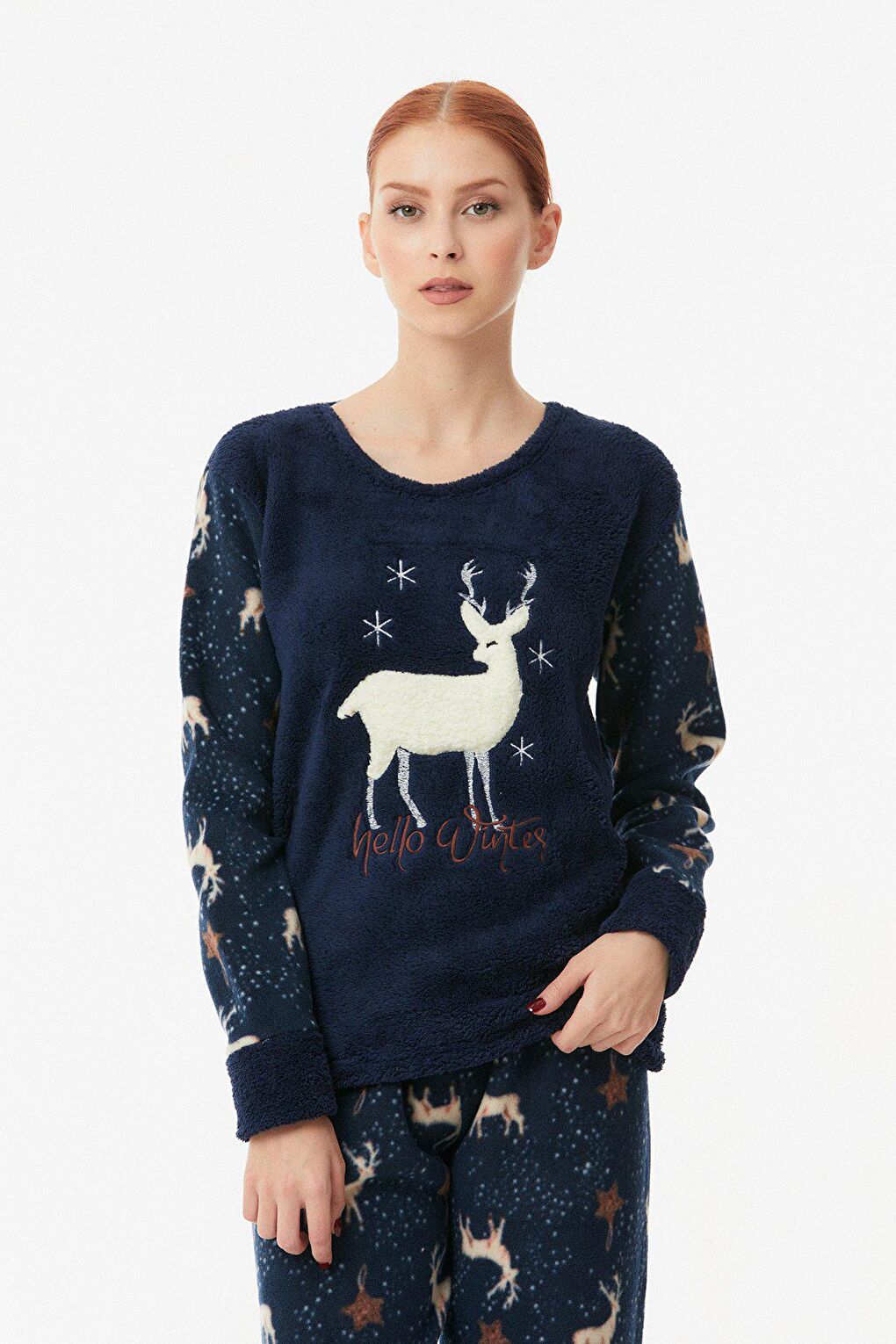 - نام : Nakışlı Bisiklet Yaka Polar Pijama Takımı