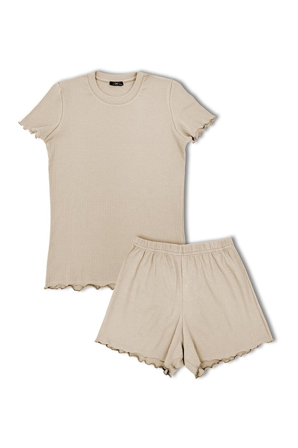 - نام : Pamuklu Fitilli Kısa Kollu Şortlu Kadın Pijama Takım