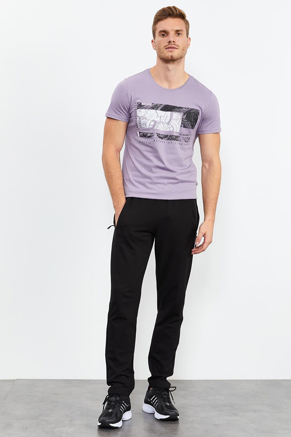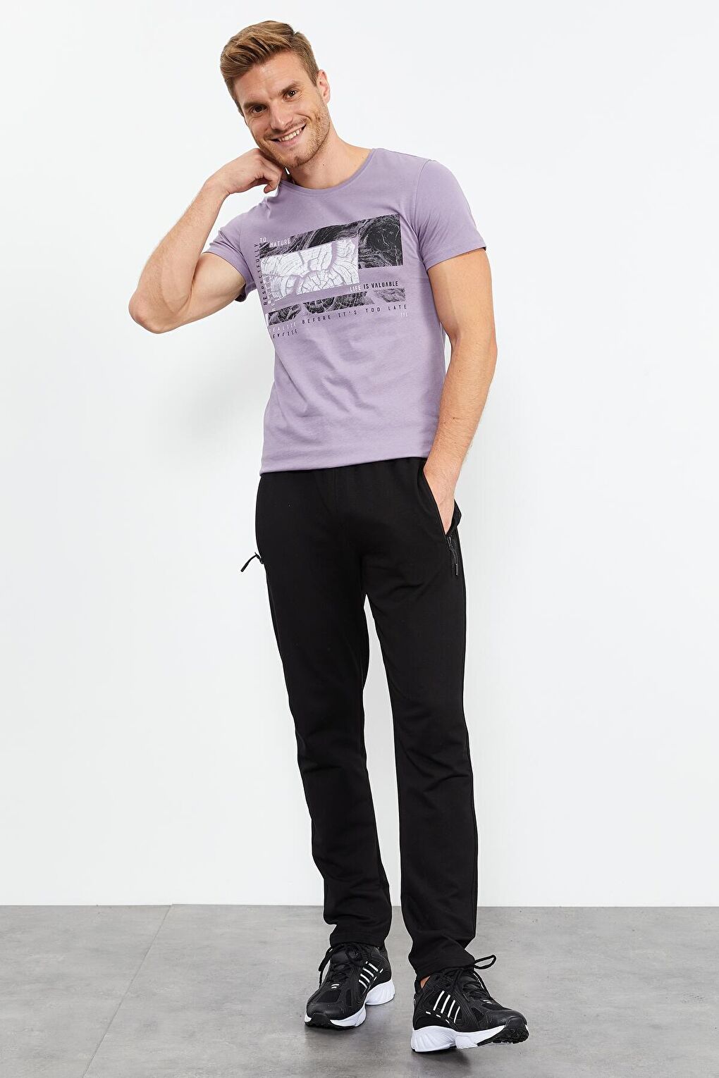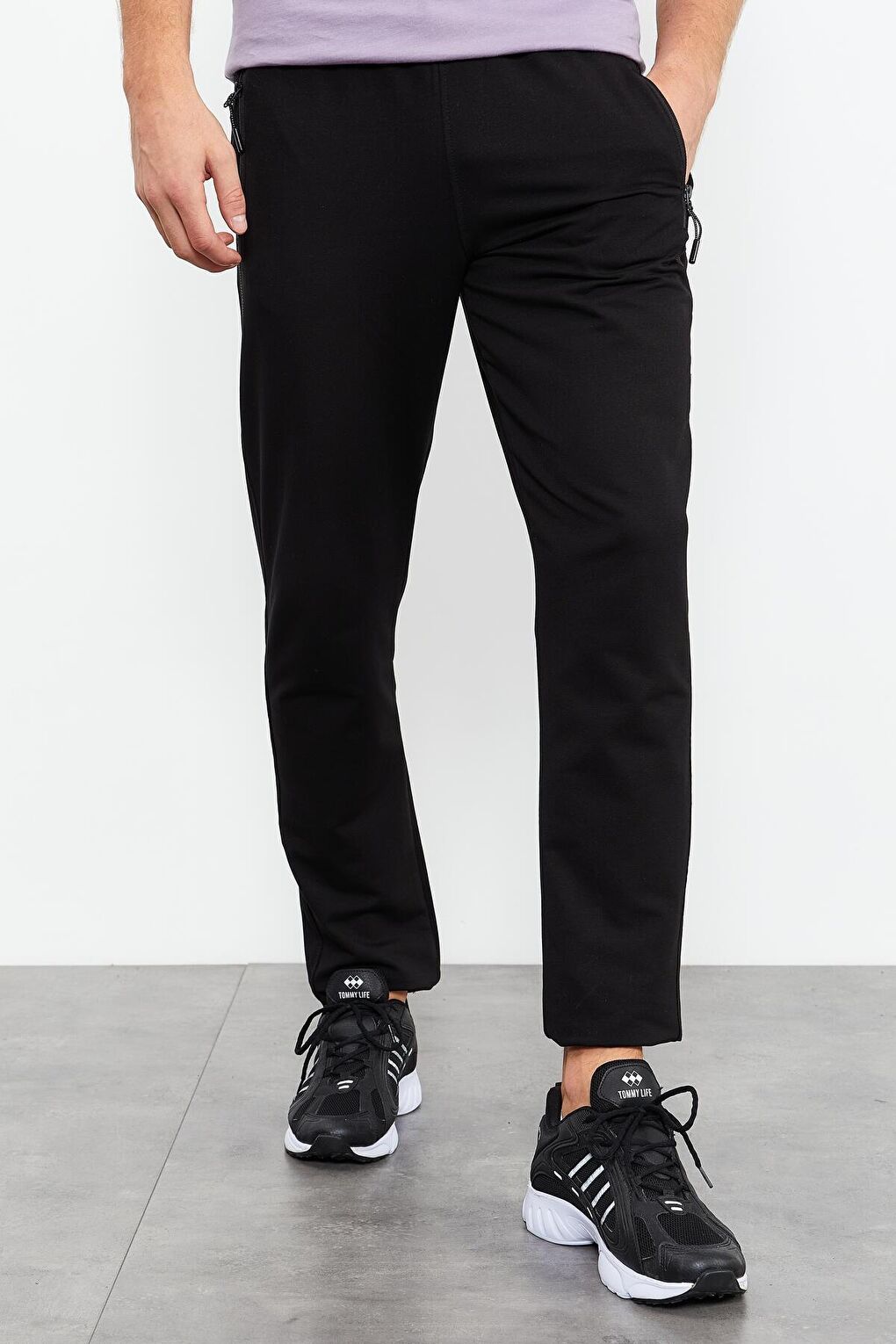 - نام : Siyah Fermuar Cepli Yazı Detaylı Standart Kalıp Klasik Paça Erkek Eşofman Alt - 84744