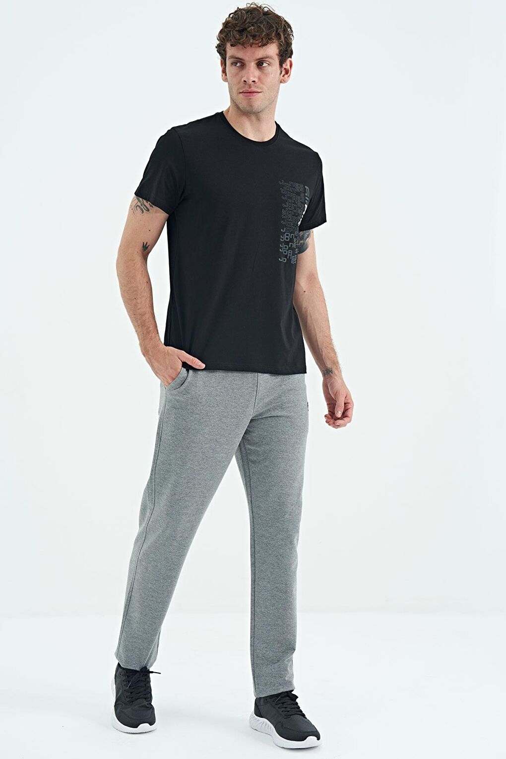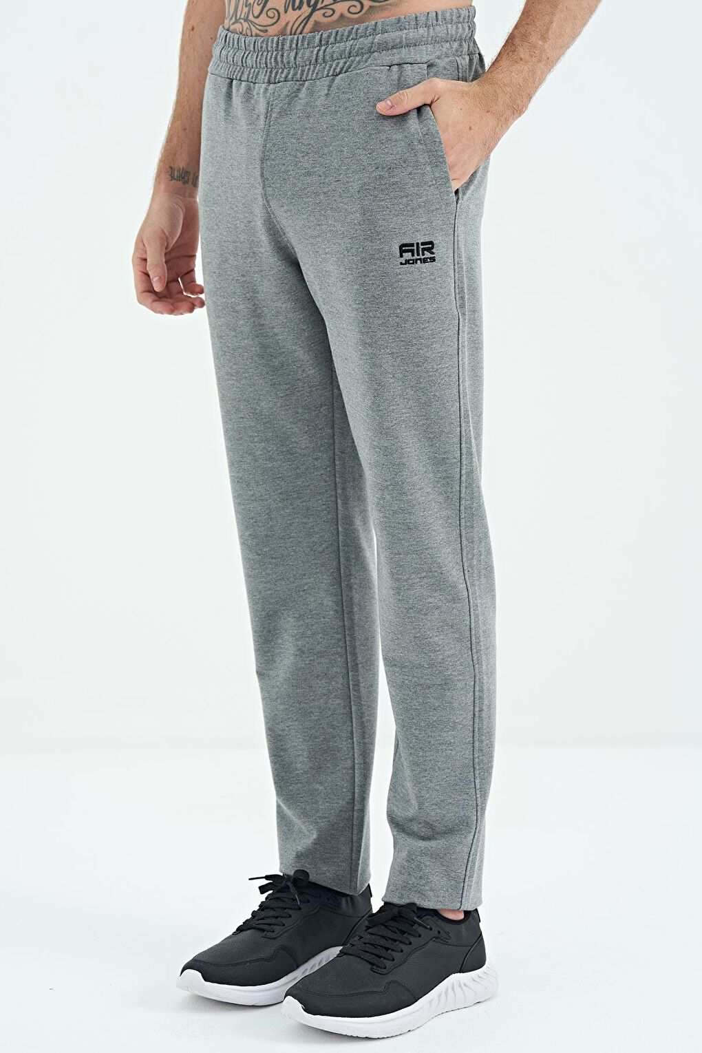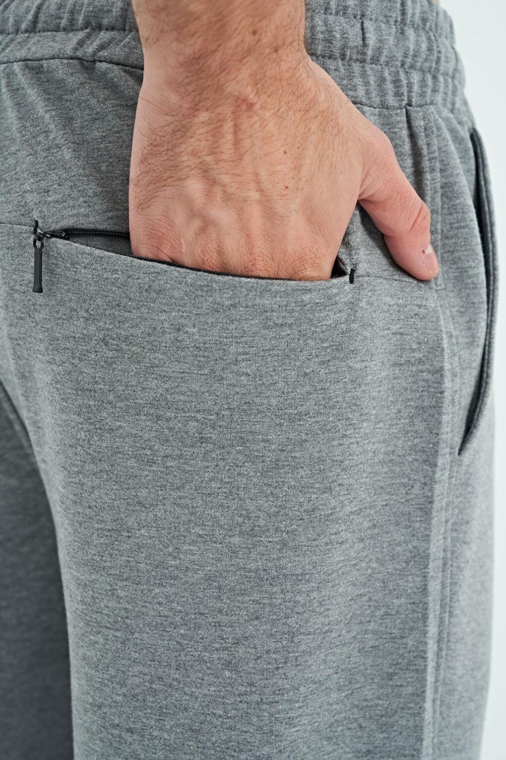 - نام : Gri Melanj Bağcıklı Arka Gizli Cep Detaylı Standart Kalıp Erkek Eşofman Alt - 84955