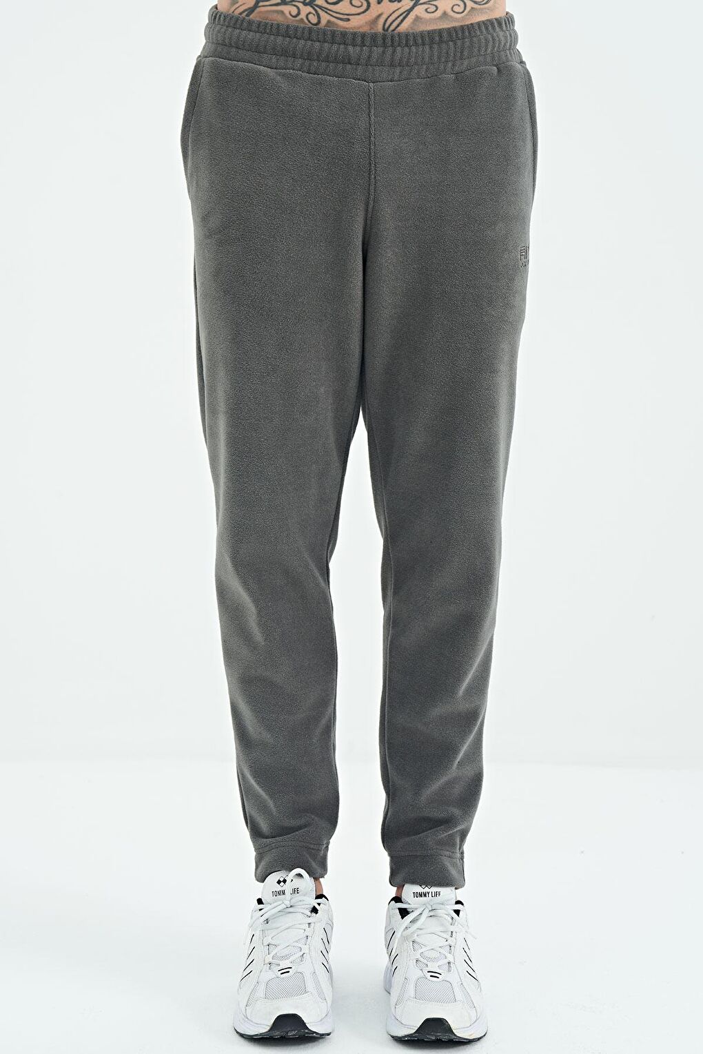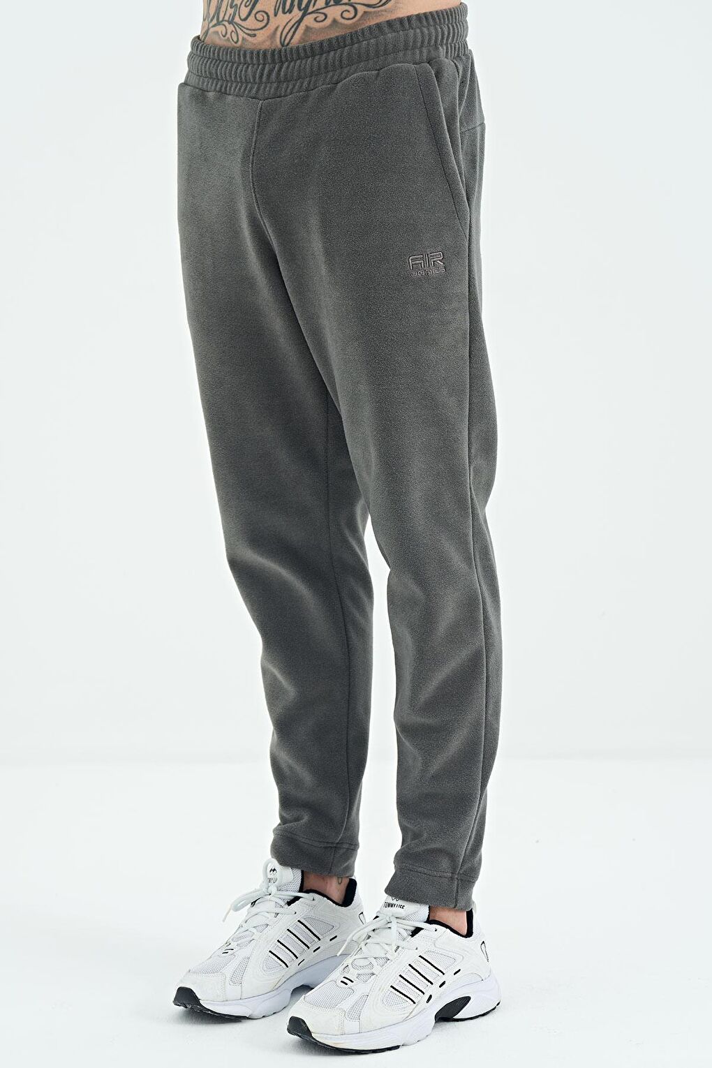 - نام : Koyu Gri Logo Nakışlı Gizli Fermuarlı Bağcıklı Polar Erkek Eşofman Alt - 82108