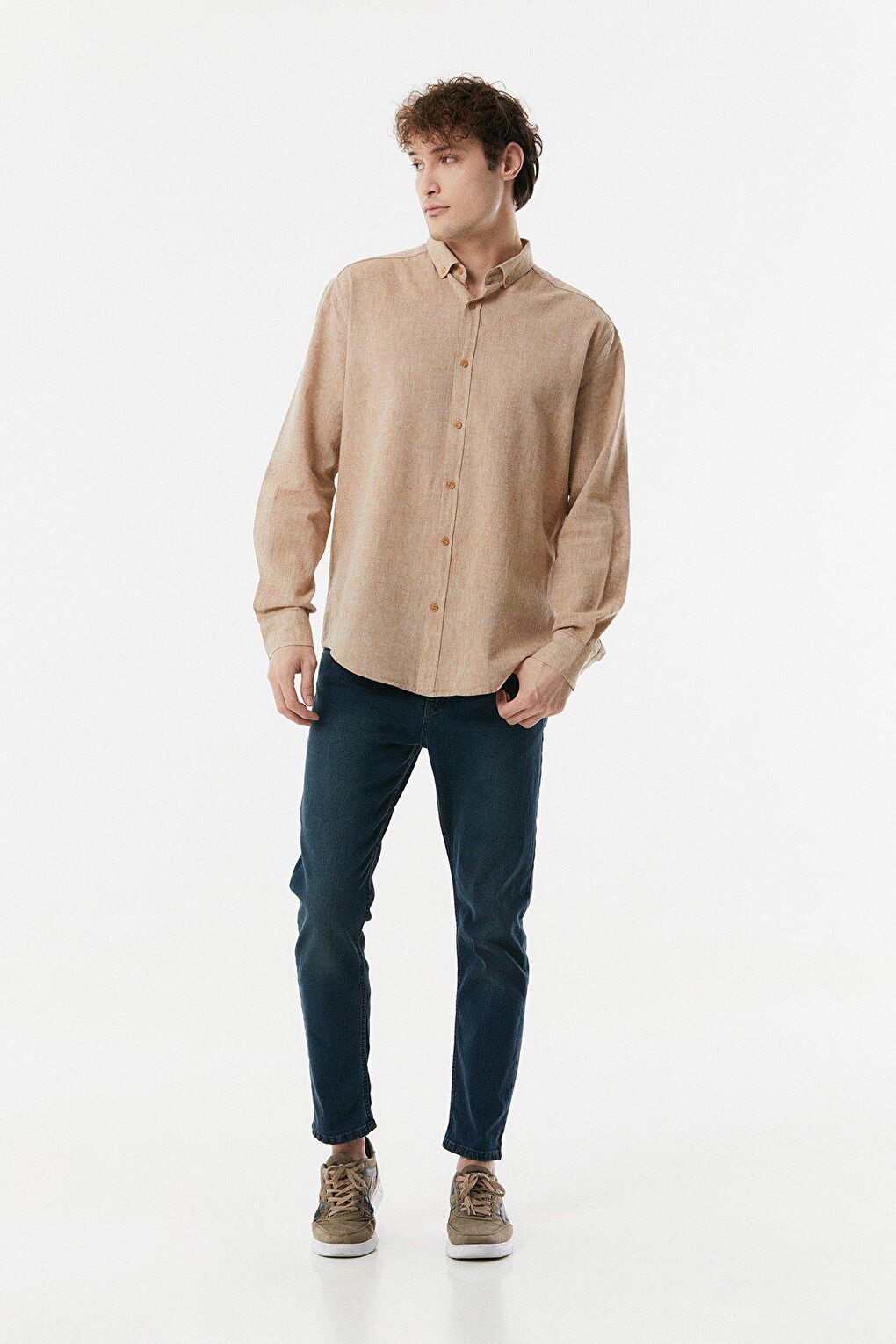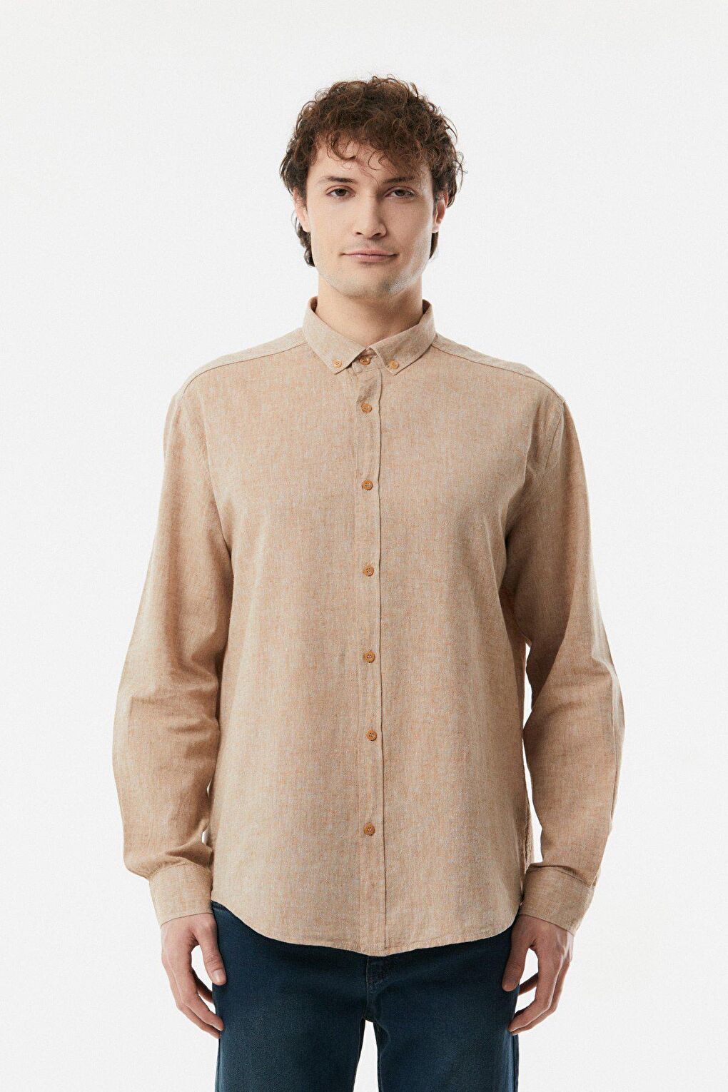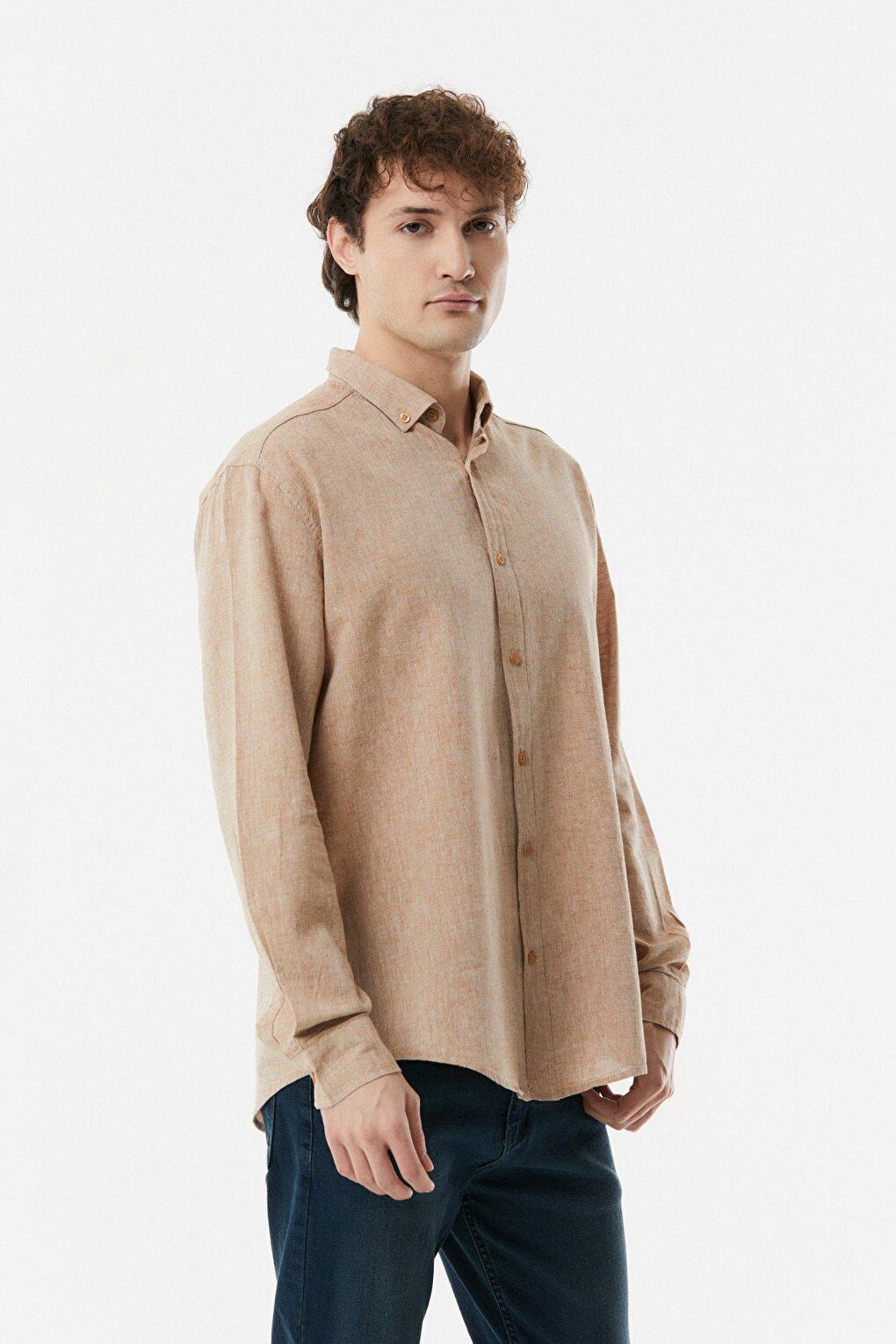 خرید اینترنتی پیراهن آستین بلند مردانه بژ برند Fullamoda 23YERK6045180704