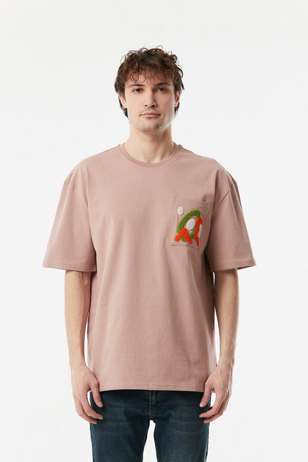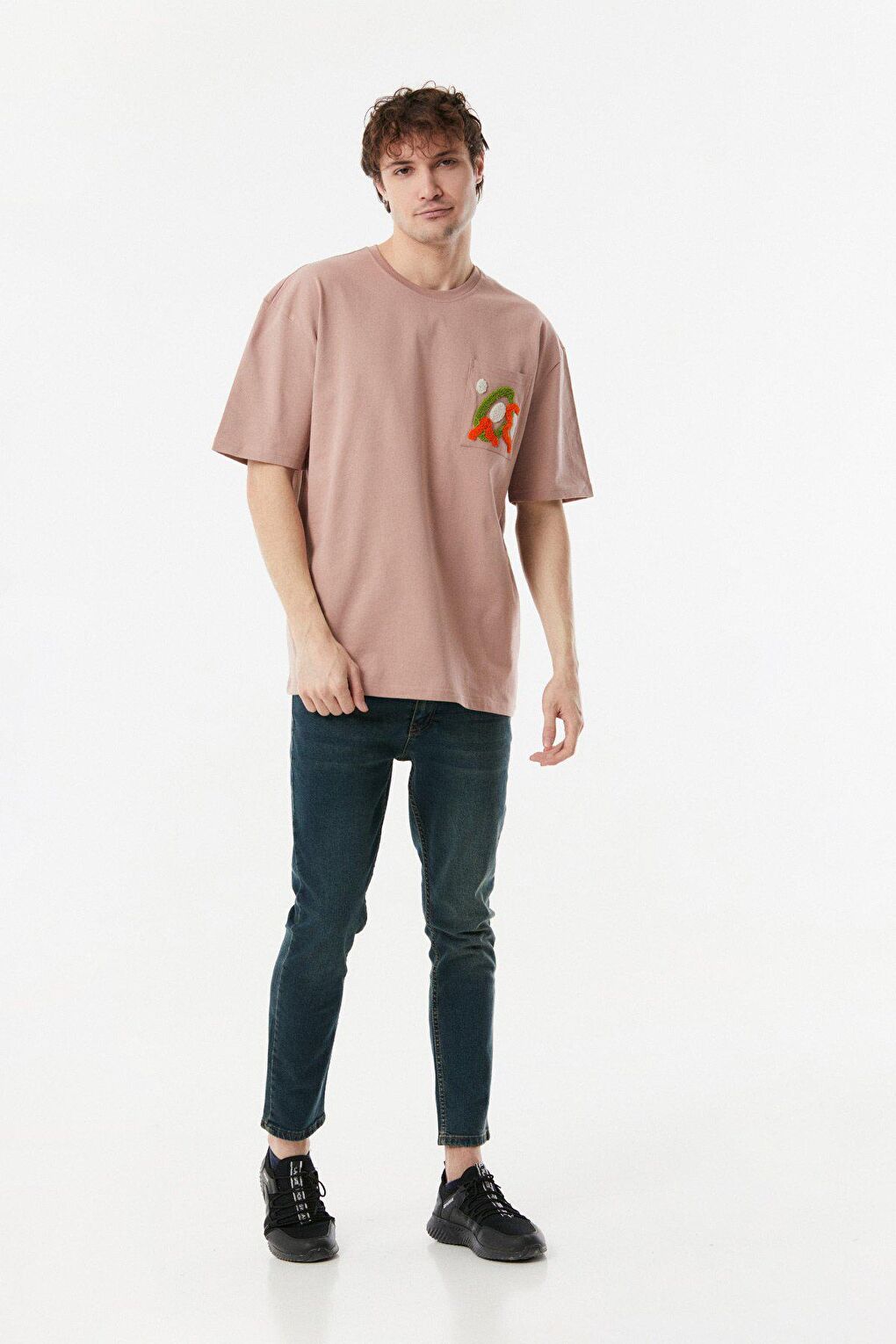 - نام : Nakışlı Bisiklet Yaka Oversize Tişört