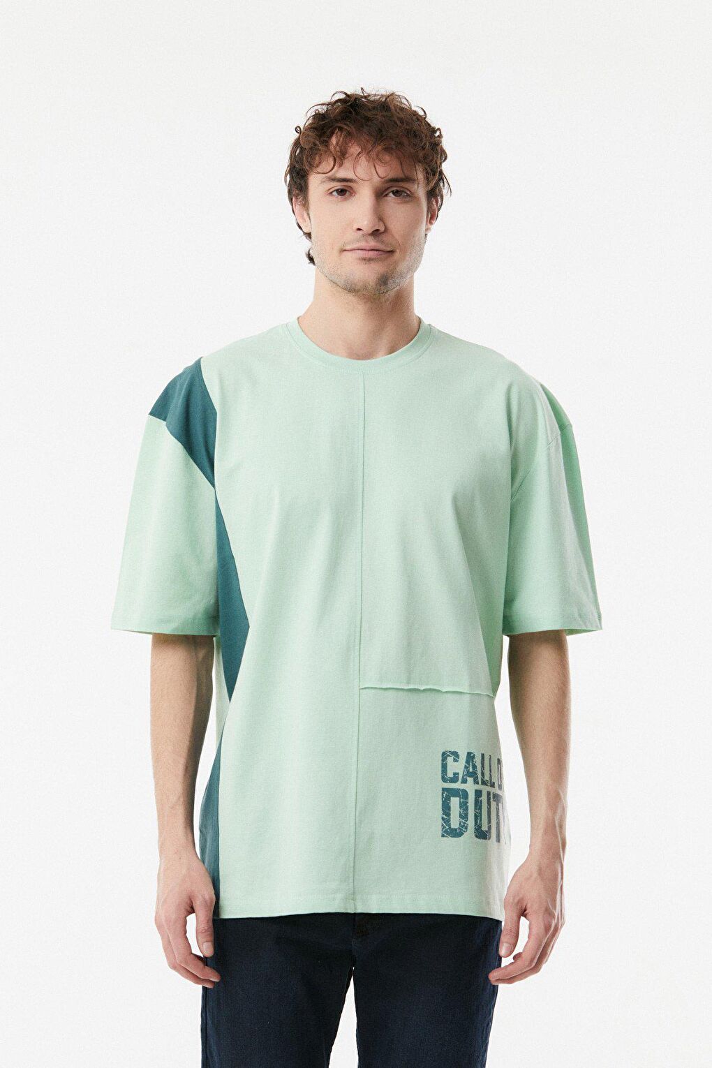 - نام : Renk Bloklu Bisiklet Yaka Oversize Tişört