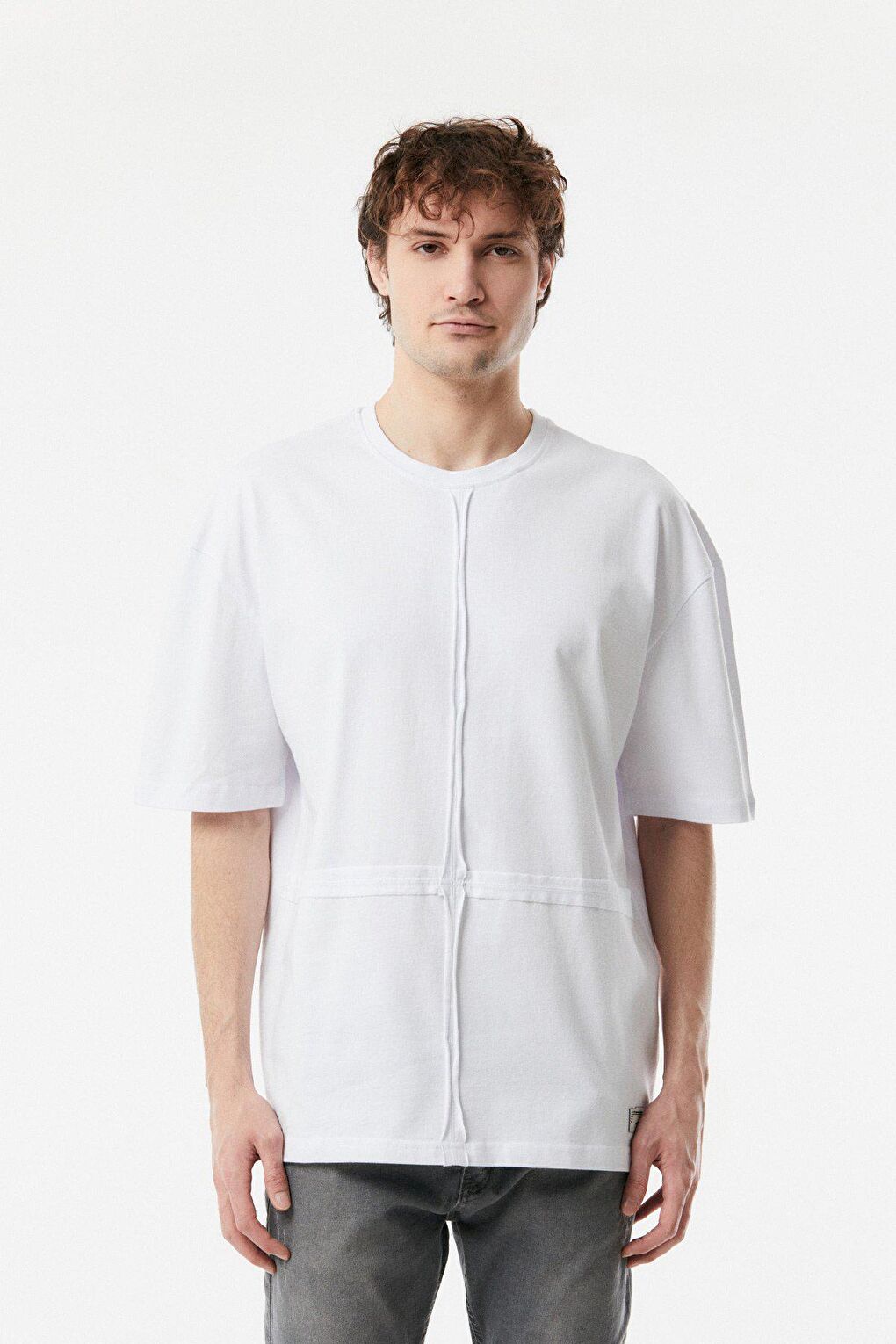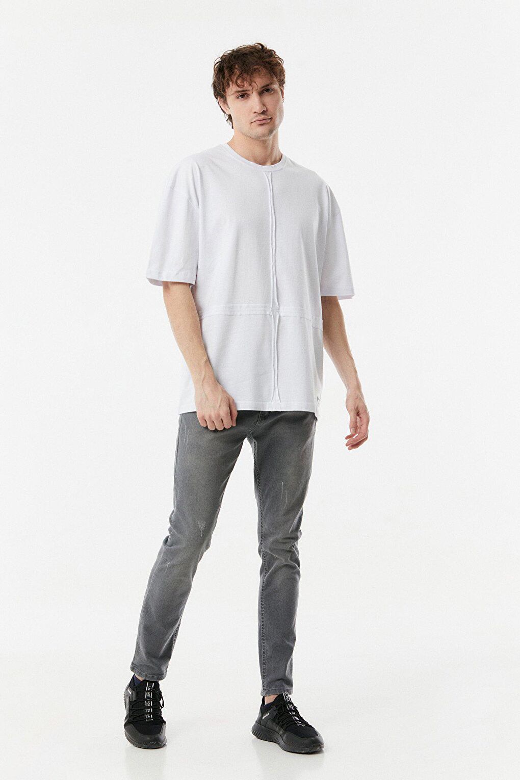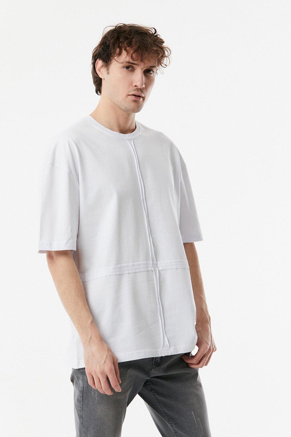 - نام : Parçalı Bisiklet Yaka Oversize Tişört