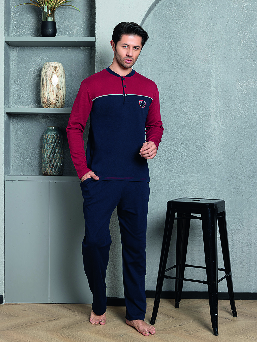 خرید اینترنتی ست لباس راحتی مردانه زرشکی برند ahengim 1-2-10001208