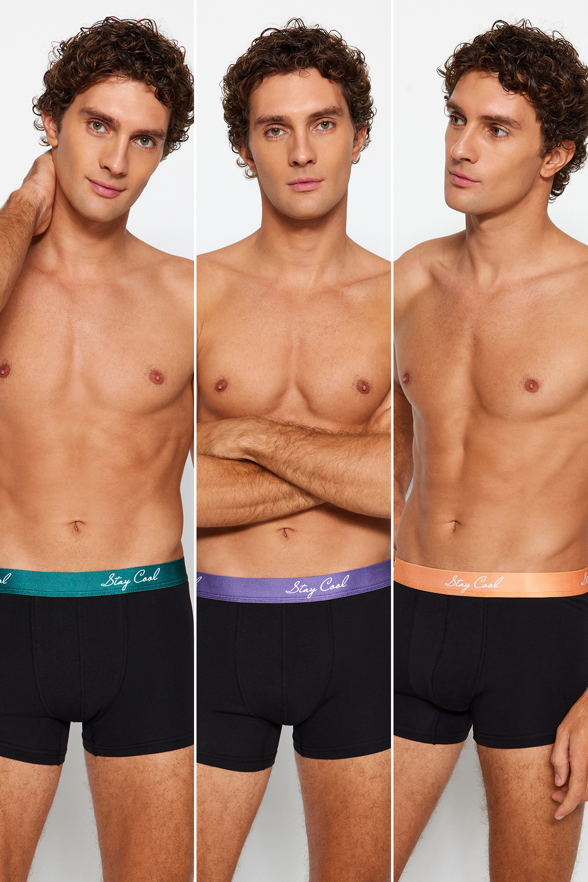- نام : 3'lü Paket Siyah Yazılı Lastikli Erkek Couple Boxer