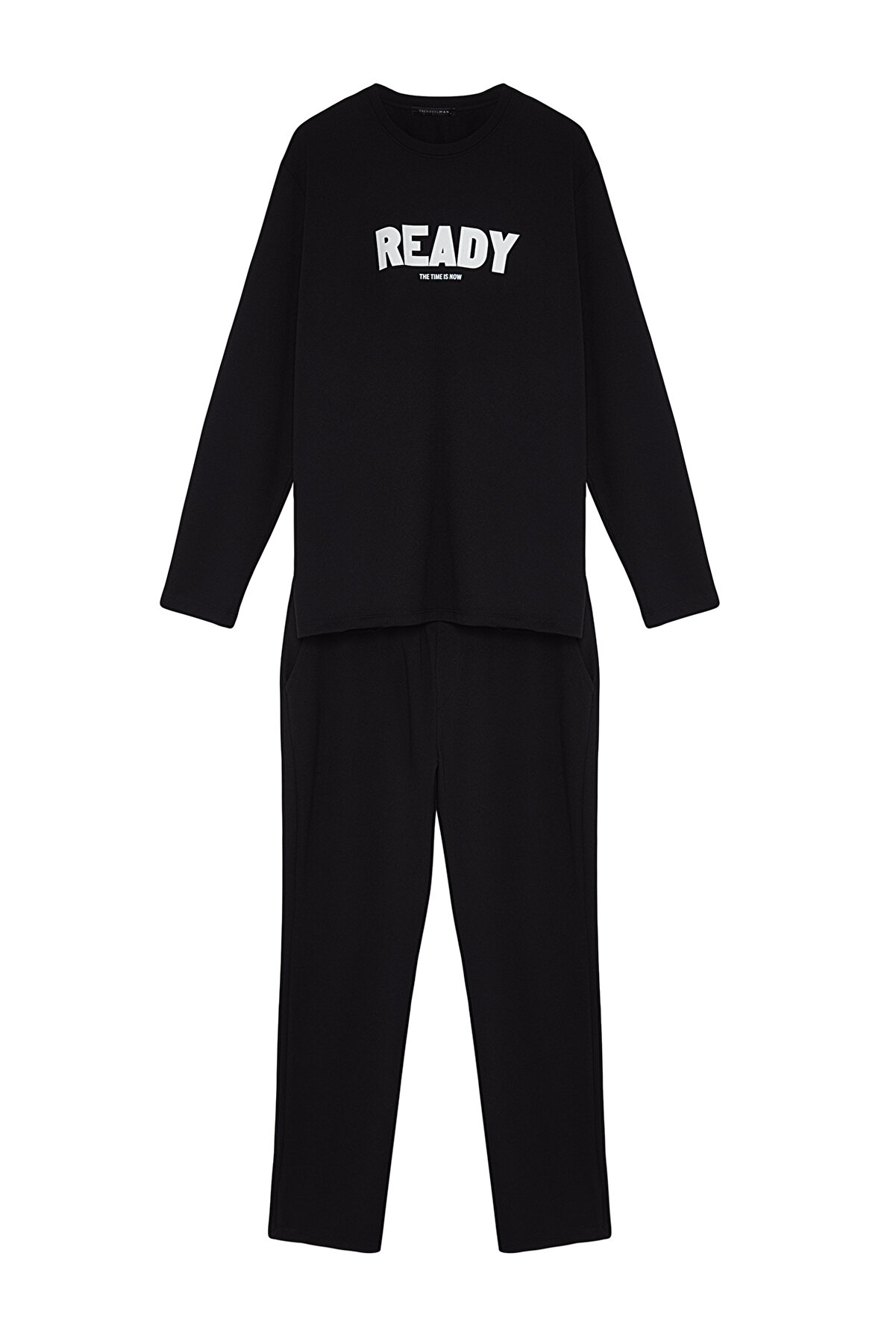 - نام : Erkek Siyah Regular Fit Baskılı Örme Pijama Takımı
