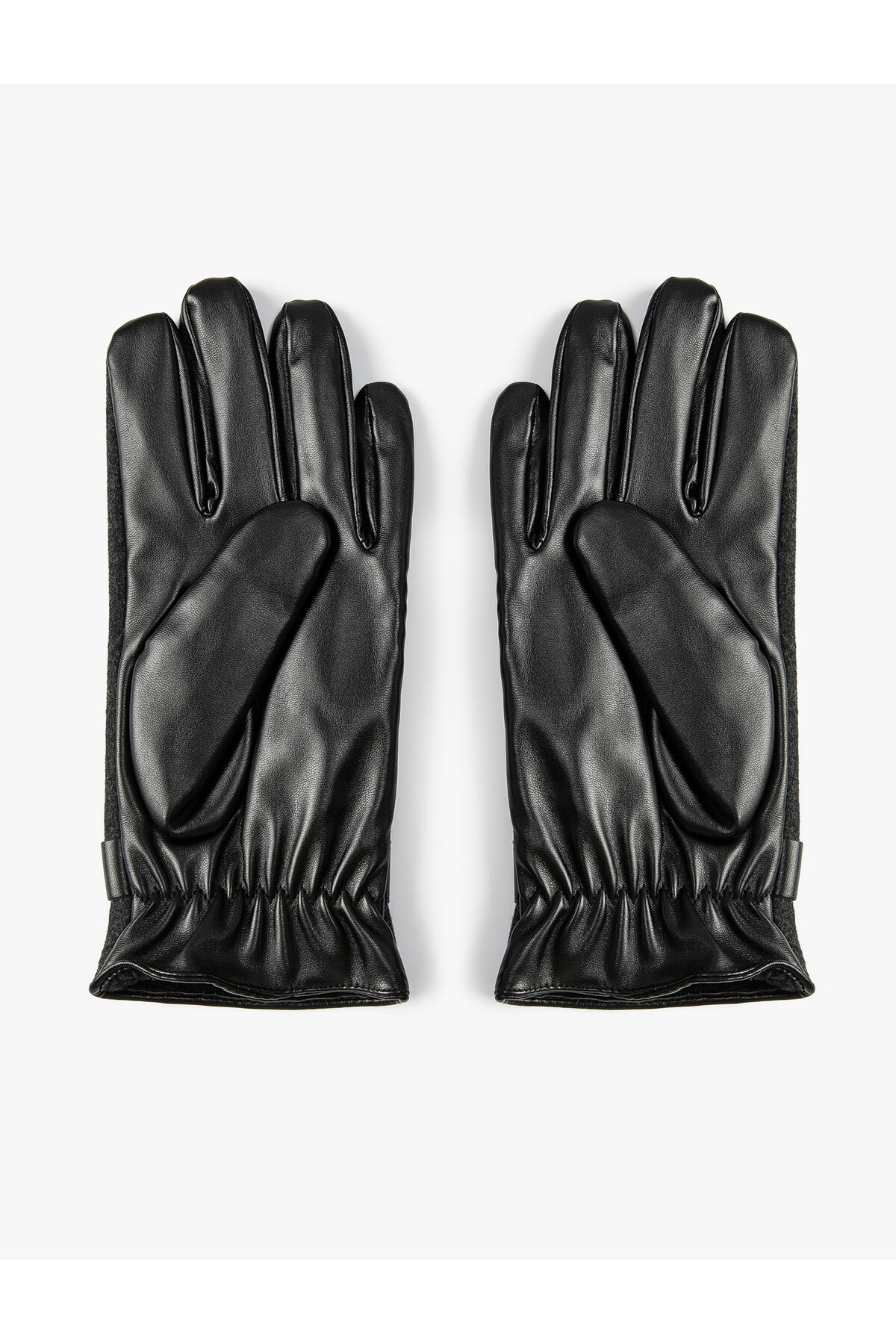 Lastik detaylı, deri görünümlü eldiven.