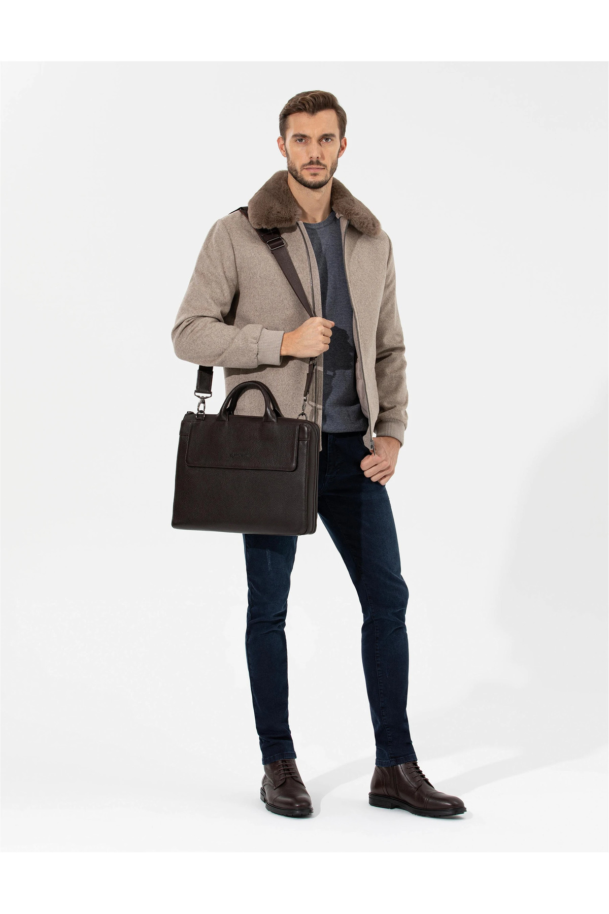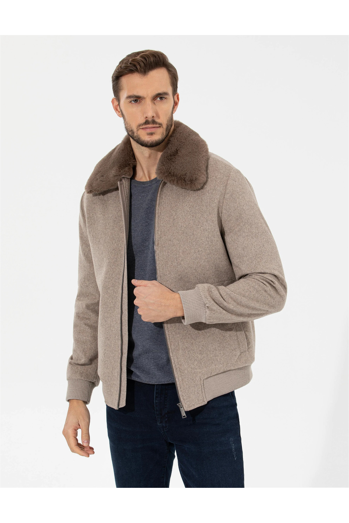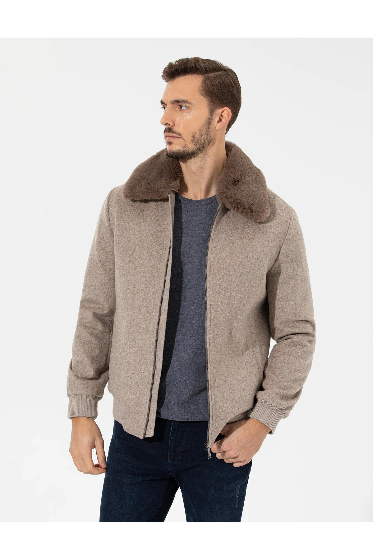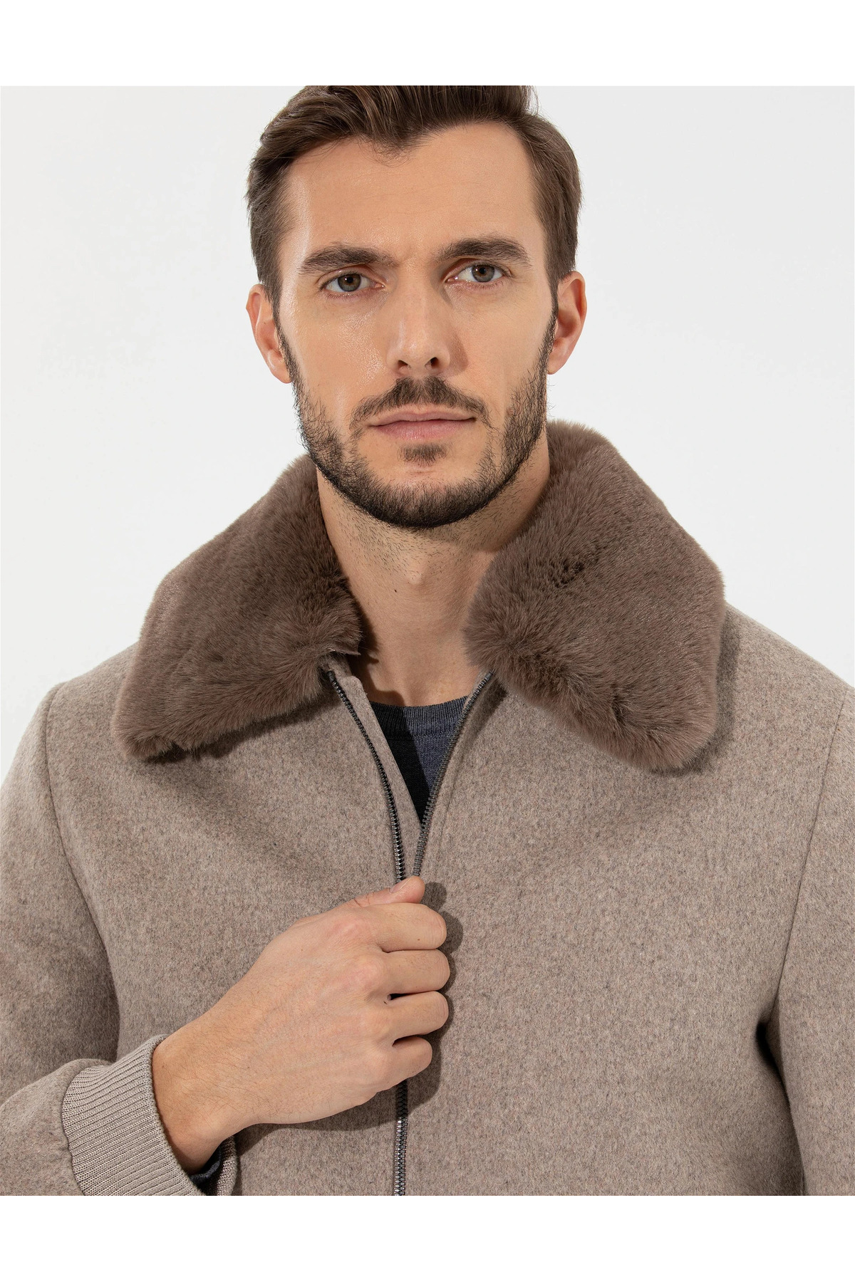 - نام : CLOVIS Yakası Kürklü (Çıkarılabilir) Fermuarlı Yandan Cepli Vizon Kaşe Mont