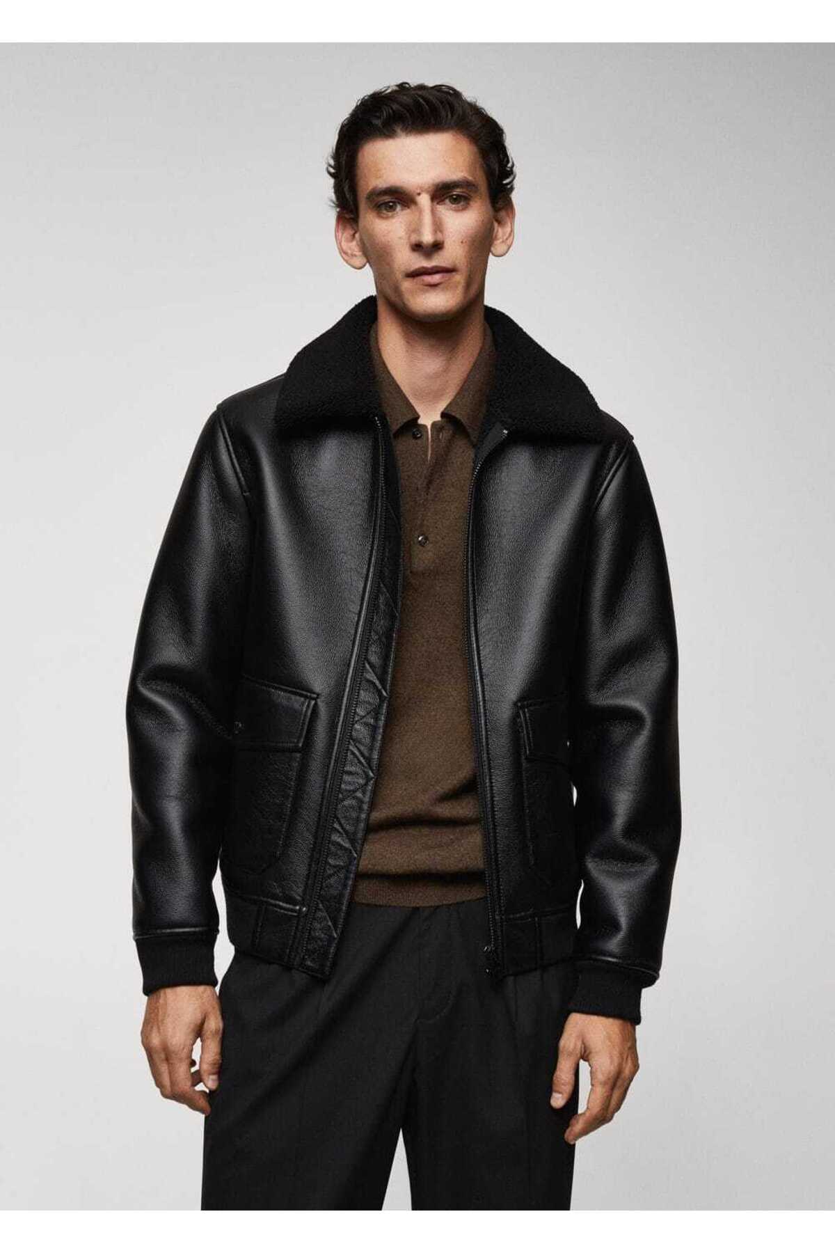 خرید اینترنتی کت کاپشن مردانه سیاه مانگو 57039405