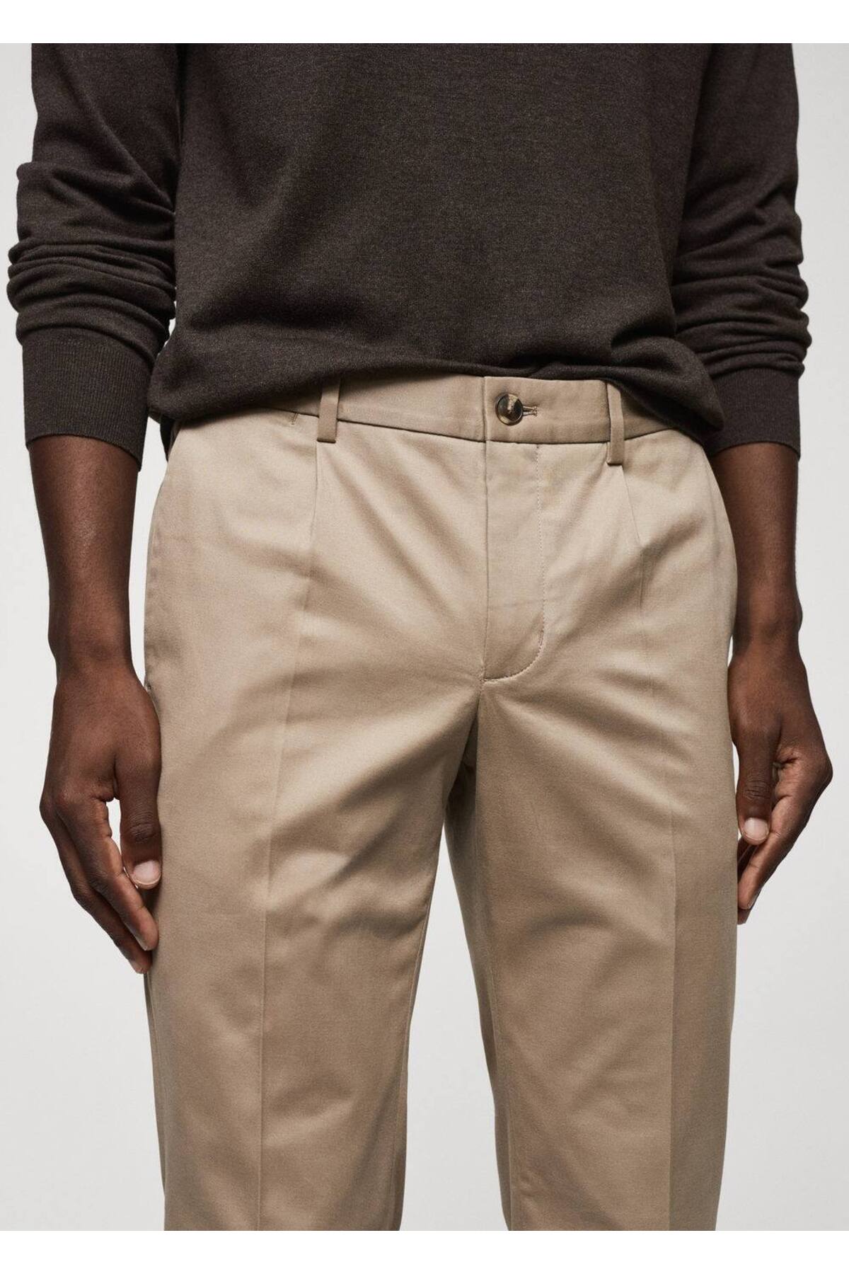 خرید اینترنتی شلوار کتان مردانه بژ مانگو 57044391