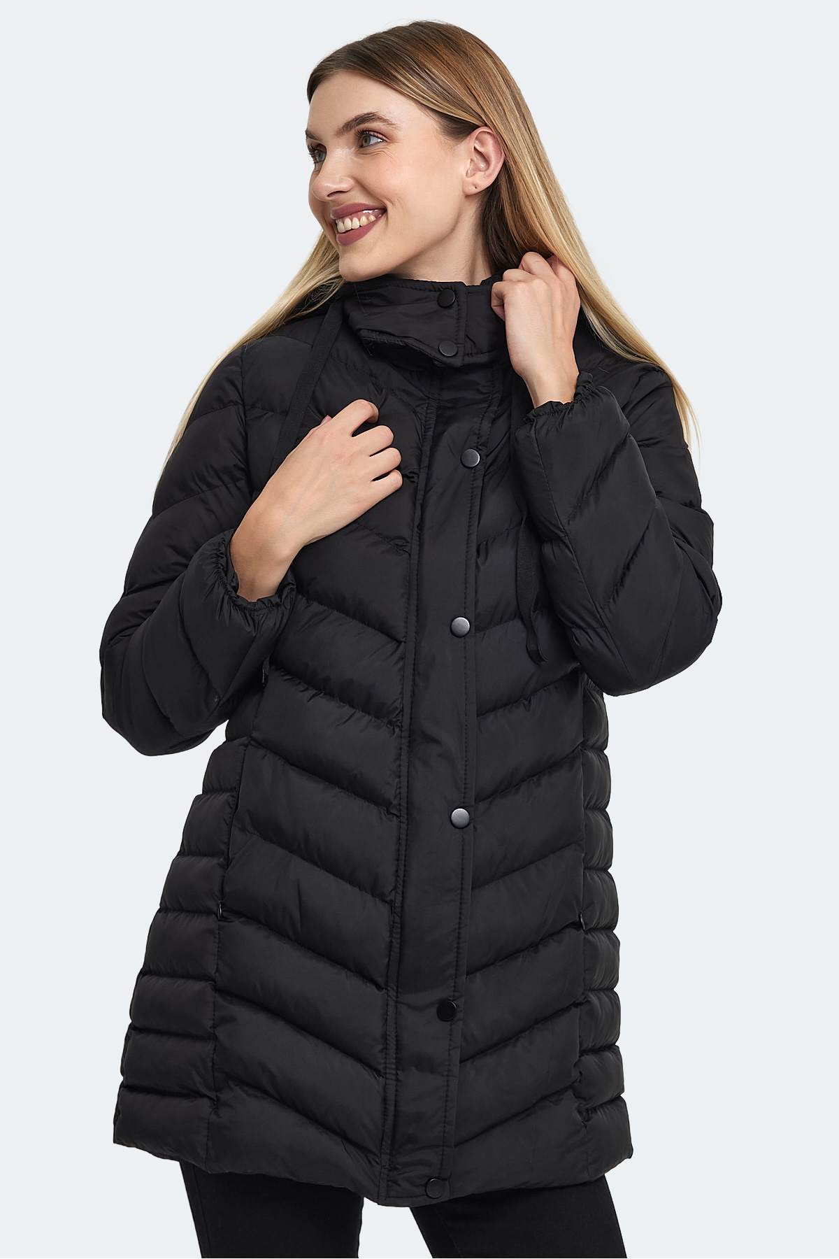 خرید اینترنتی کاپشن روزمره زنانه سیاه اسلازنگر ST23JK019