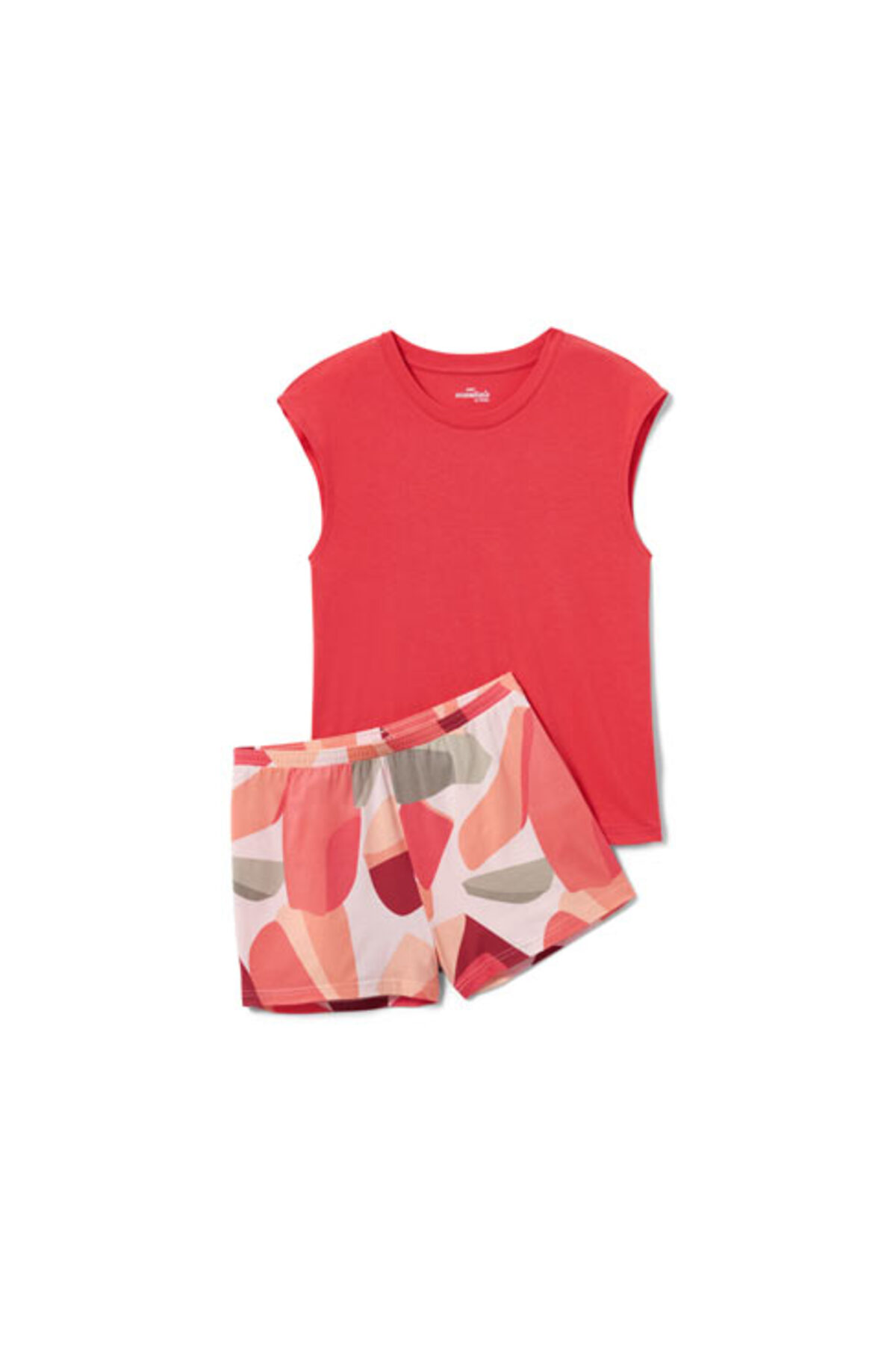 Kısa Pijama Takımı Renk: Pijama üstü kırmızıÇok renkli desenli şort Malzeme: %48 pamuklu, %47 modal, %5 elastan Ölçüler: Üst kısmın toplam uzunluğu yakl. 62 cm (M 40/42 Beden) Pamuk ve modaldan yumuşak materyal|Yuvarlak yakalı pijama üstü|Esnek bel bantlı şort|Uzun ömürlülük ve yıkamaya dirençlilik için kaliteli marka elastanlı|Bu şortlu pijama takımı çiftçileri destekliyor.