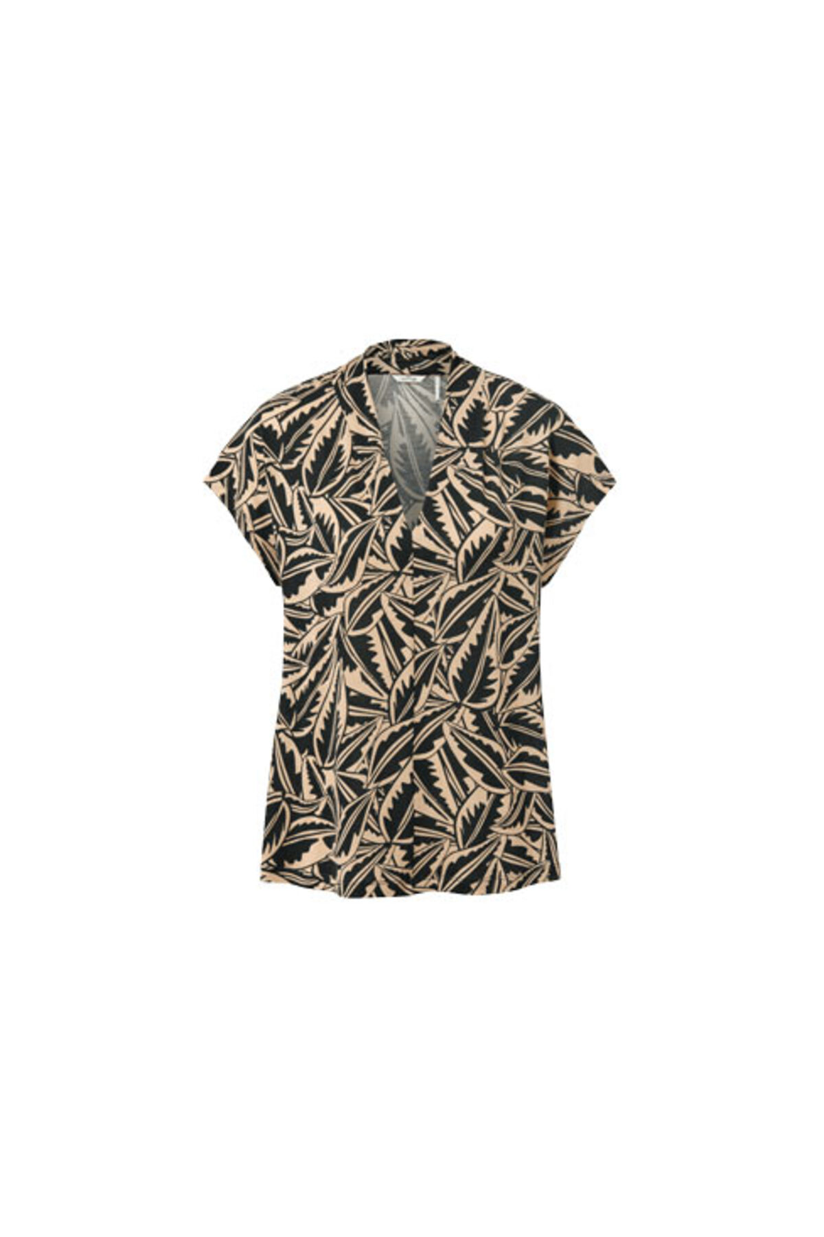 Baskılı dik yaka bluz kesim: Regular fit renk: Bej palmiye yaprakları baskılı siyah malzeme: %100 lyocell (lyocell) ölçüler: Toplam uzunluğu yakl. 67 cm (beden m 40/42) lyocell fiberli - Son derece yumuşak ve hafif dökümlü|küçük dik yakalı v yaka kesimi|düşük omuzlu kısa kol|hafif bele oturan kesim|bölme dikişli ön kısım|bu bluz, sürdürülebilir ahşap fiberler içerir.