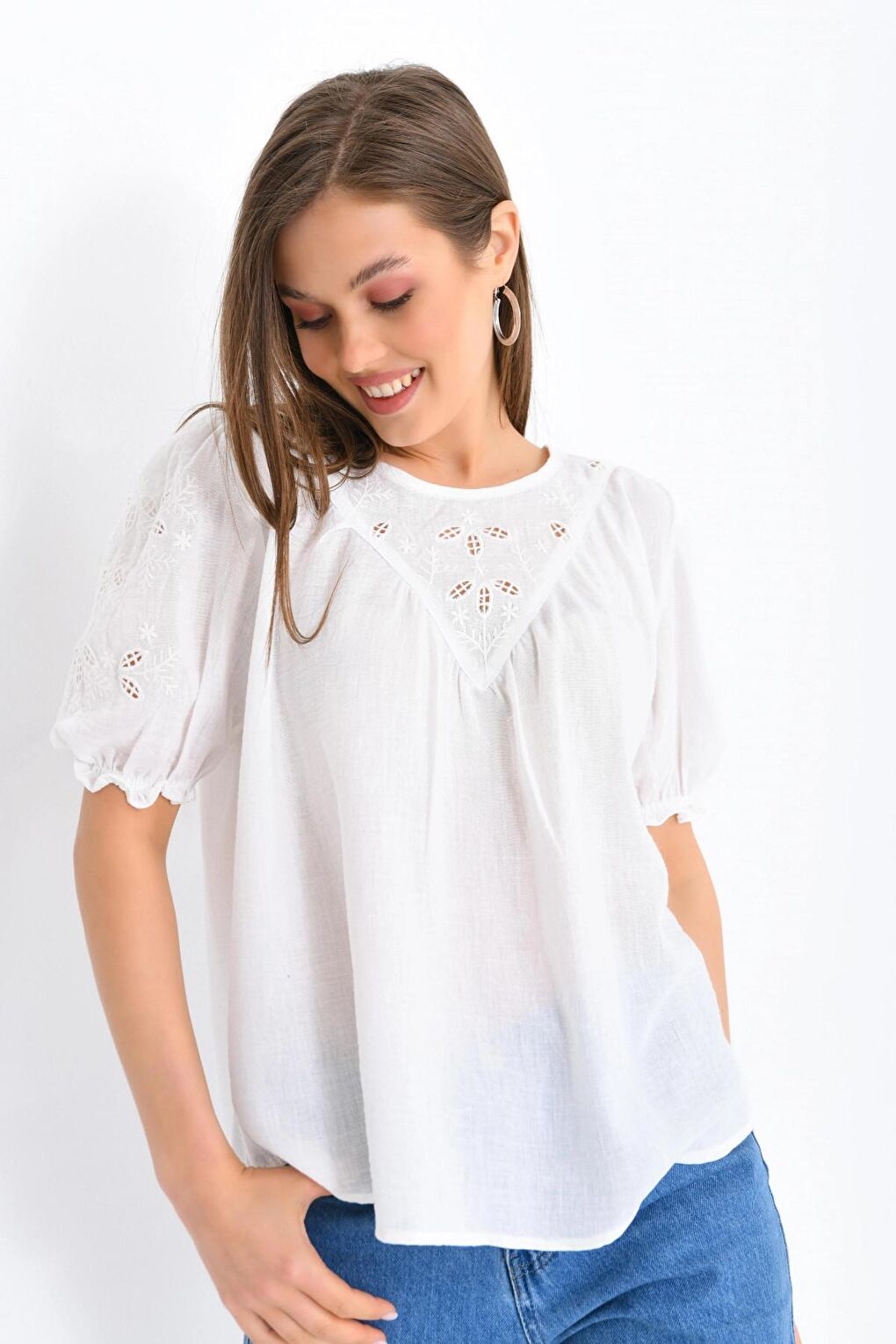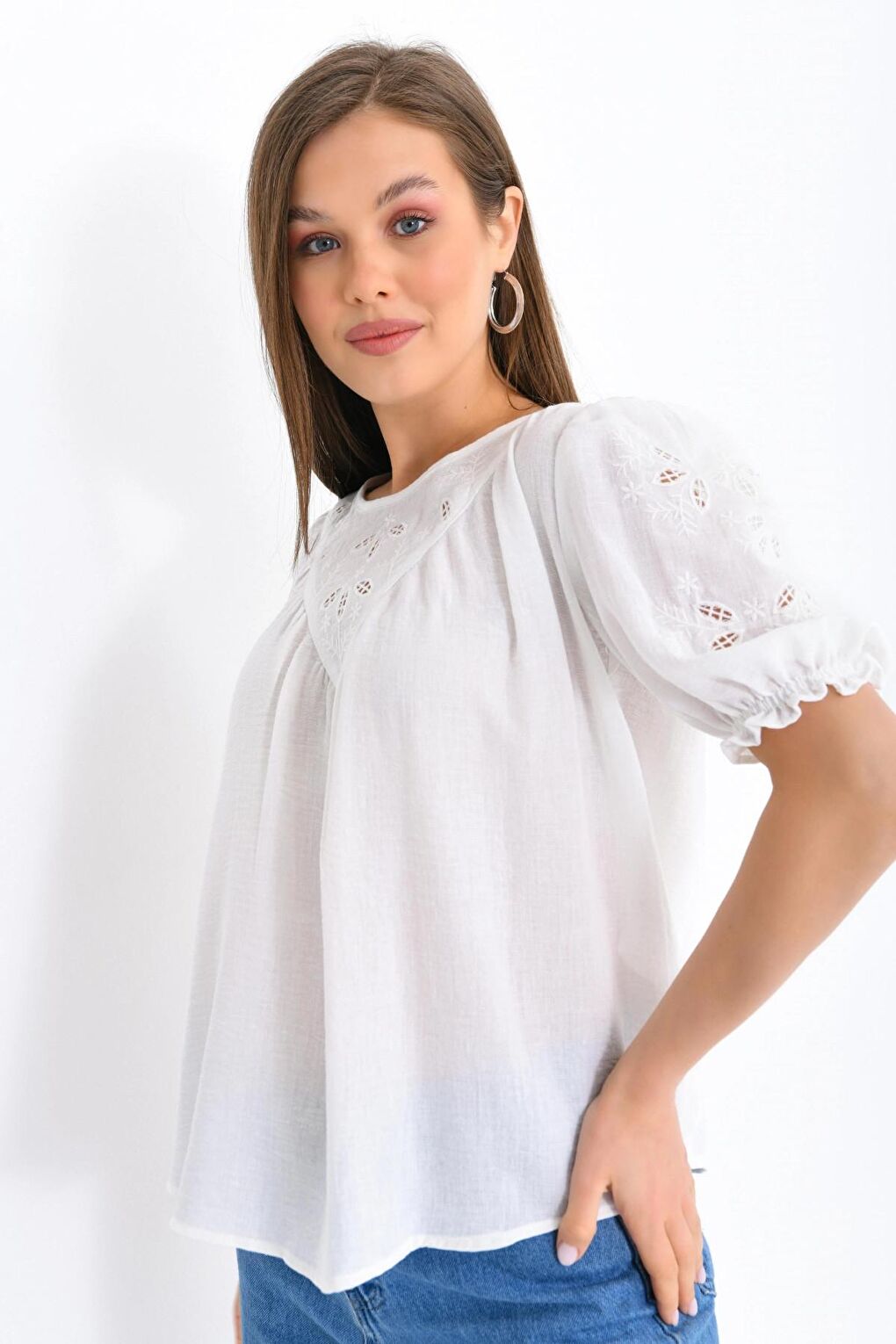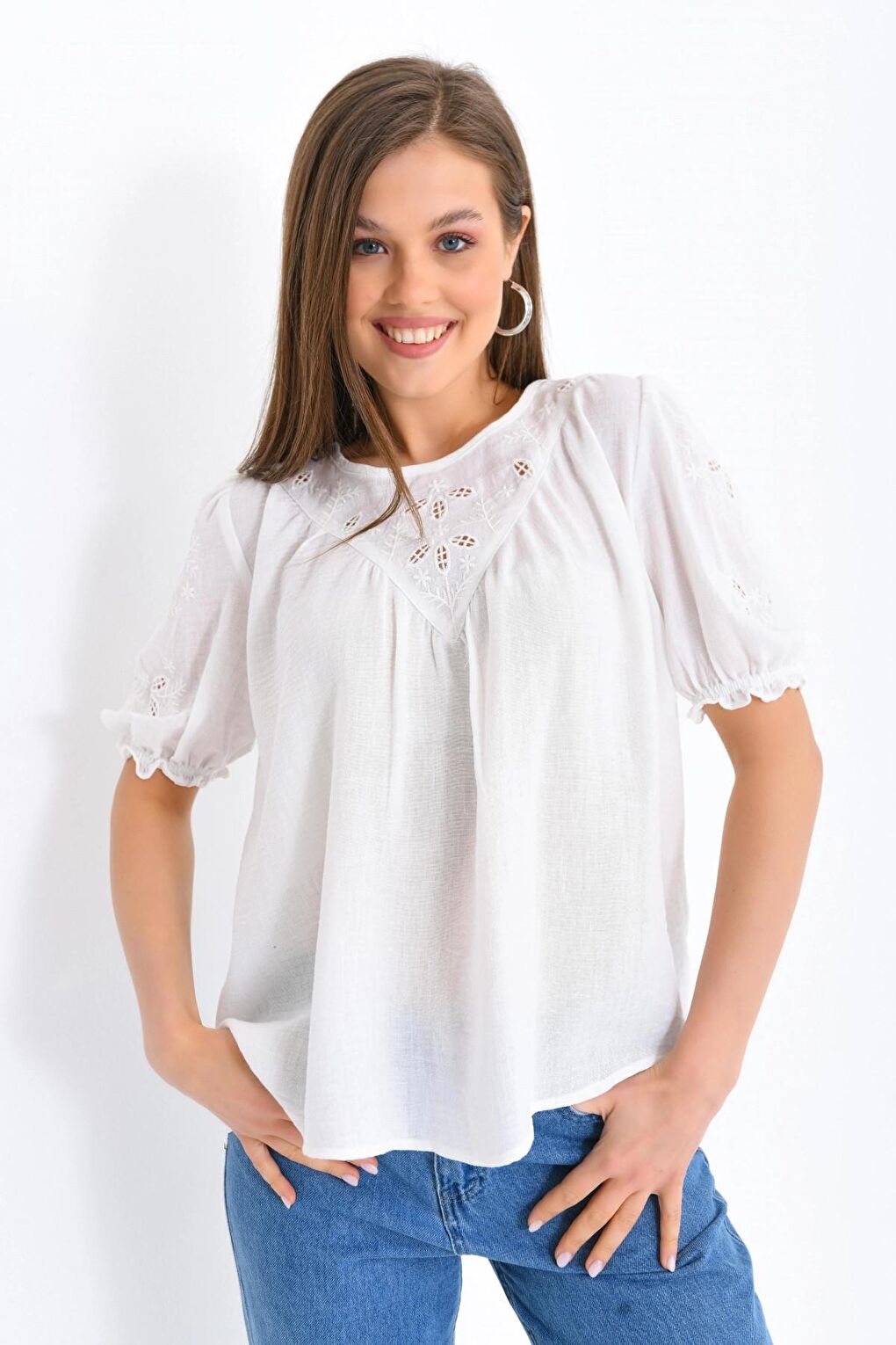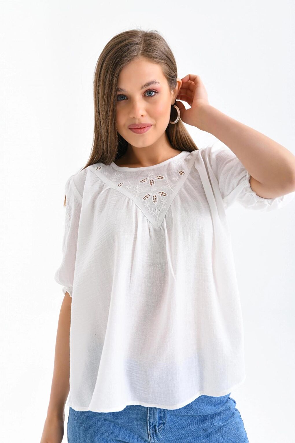 خرید اینترنتی بلوز زنانه سفید برند Parkkaron 33028-Kemik