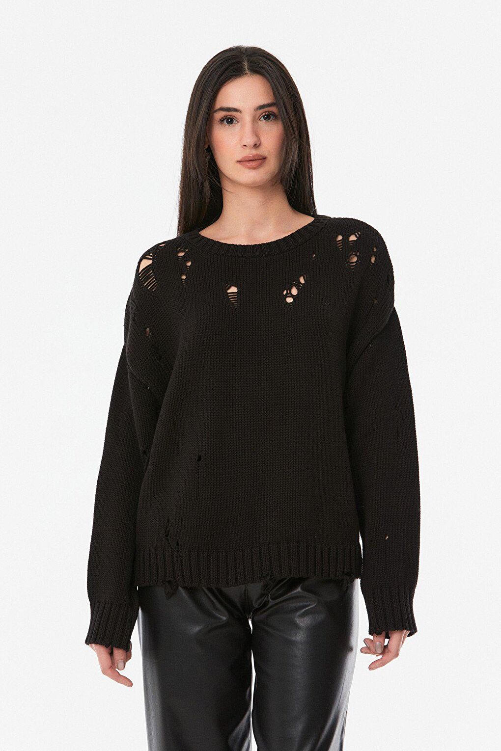- نام : Yırtık Detaylı Bisiklet Yaka Triko Kazak
