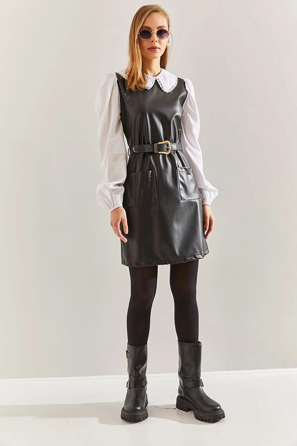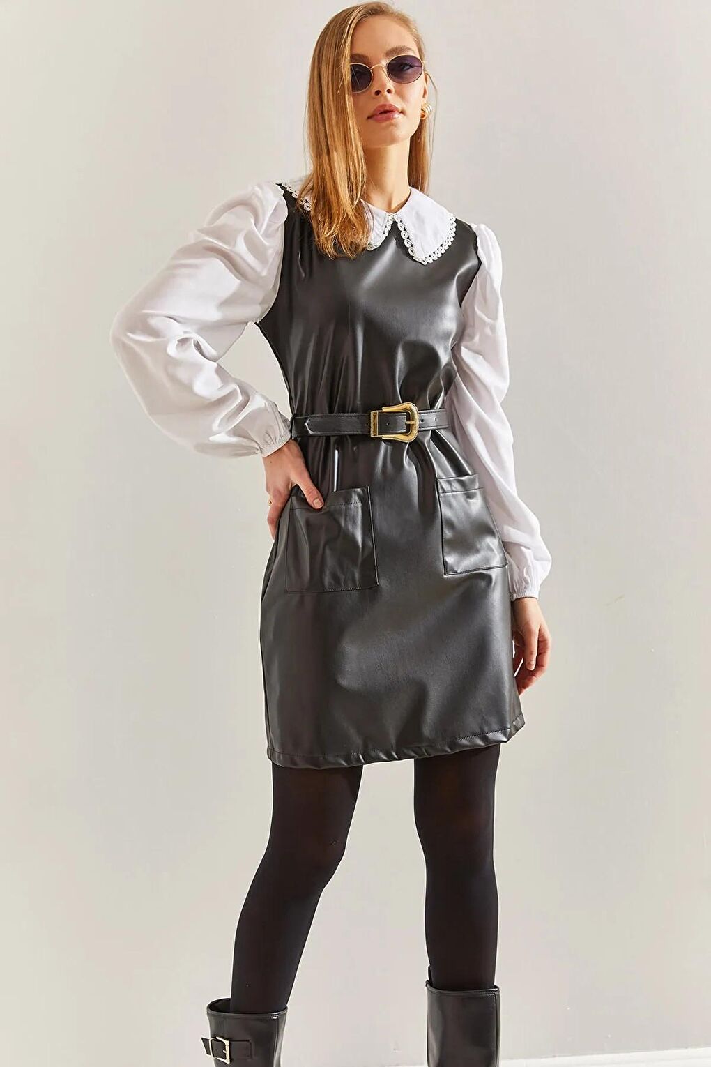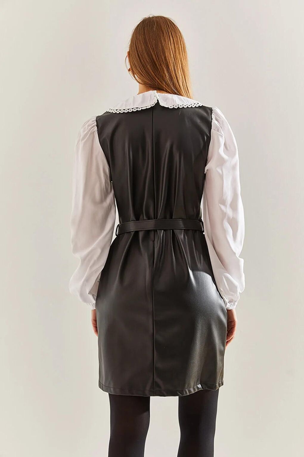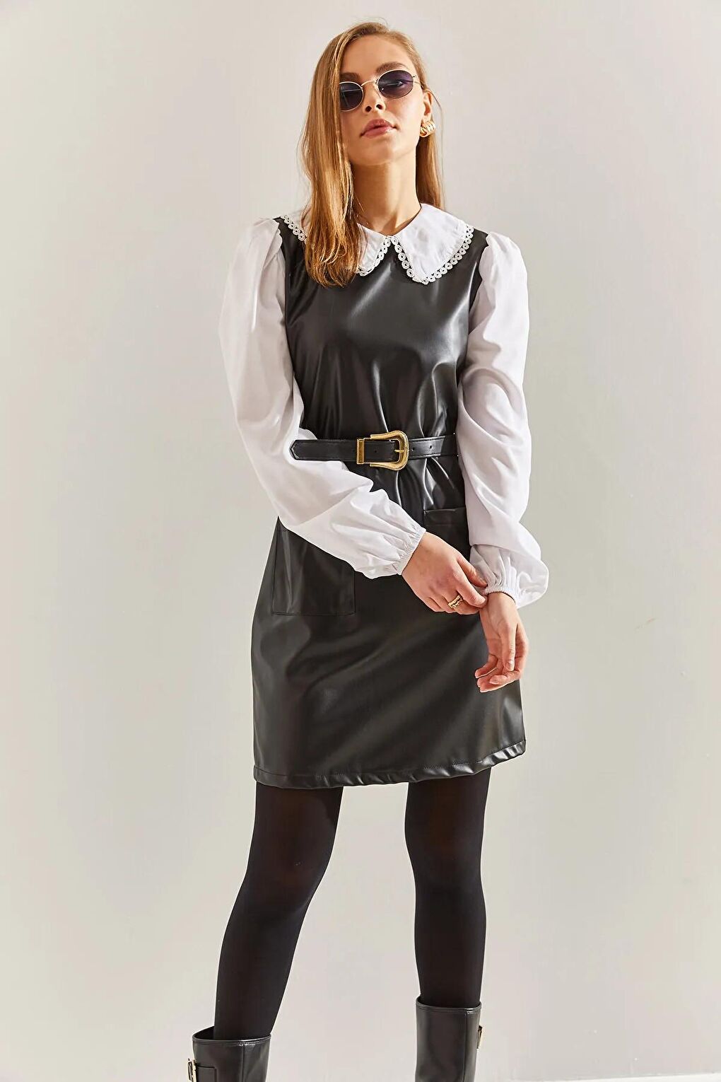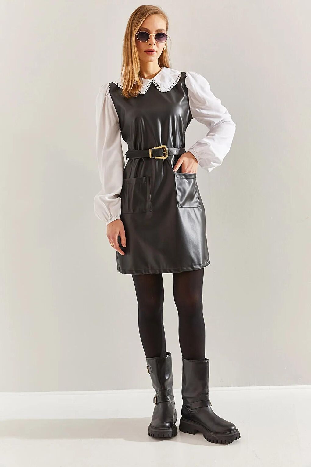 - نام : Kadın Deri Bebe Yakalı Elbise