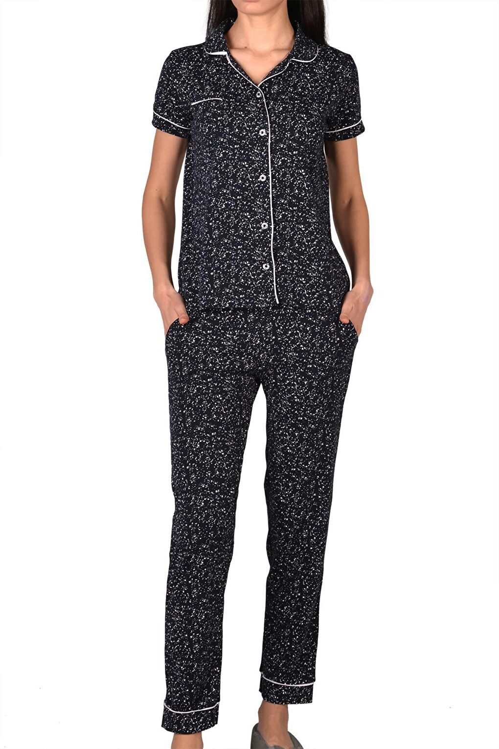 - نام : Kadın Pijama Takımı Kısa Kollu Düğmeli Cepli Pamuk Likralı