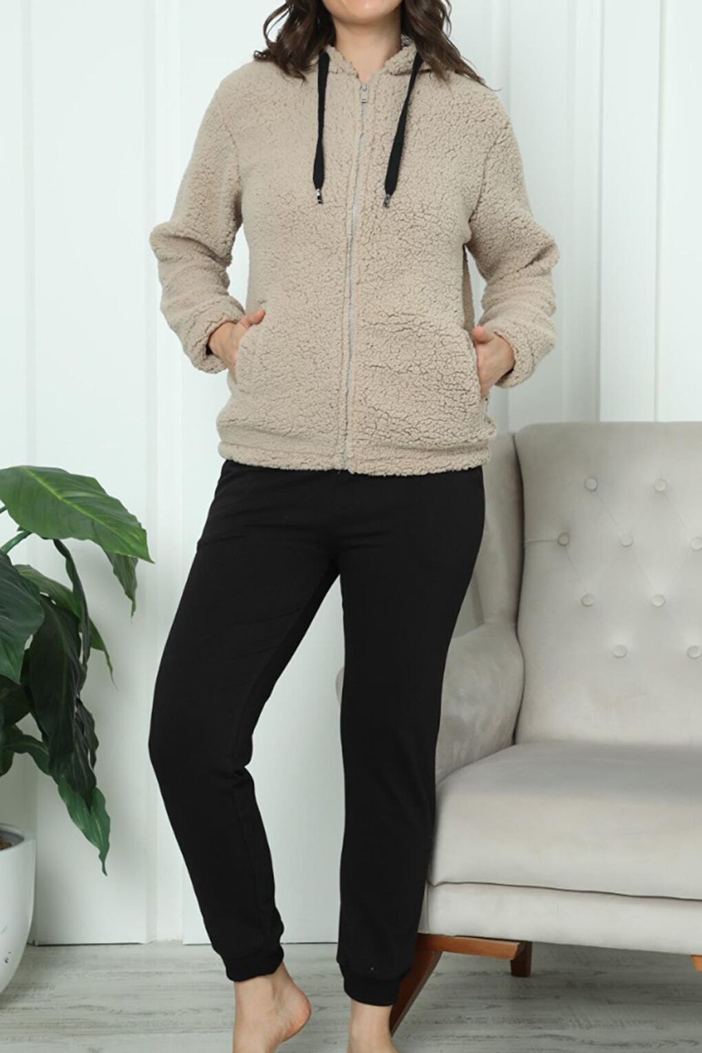- نام : Kadın Peluş Pijama Takimi Welsoft Kapüşonlu Fermuarlı Cepli