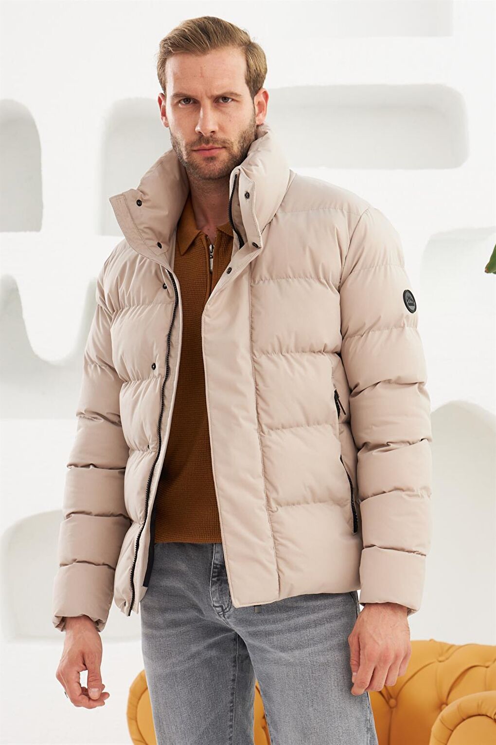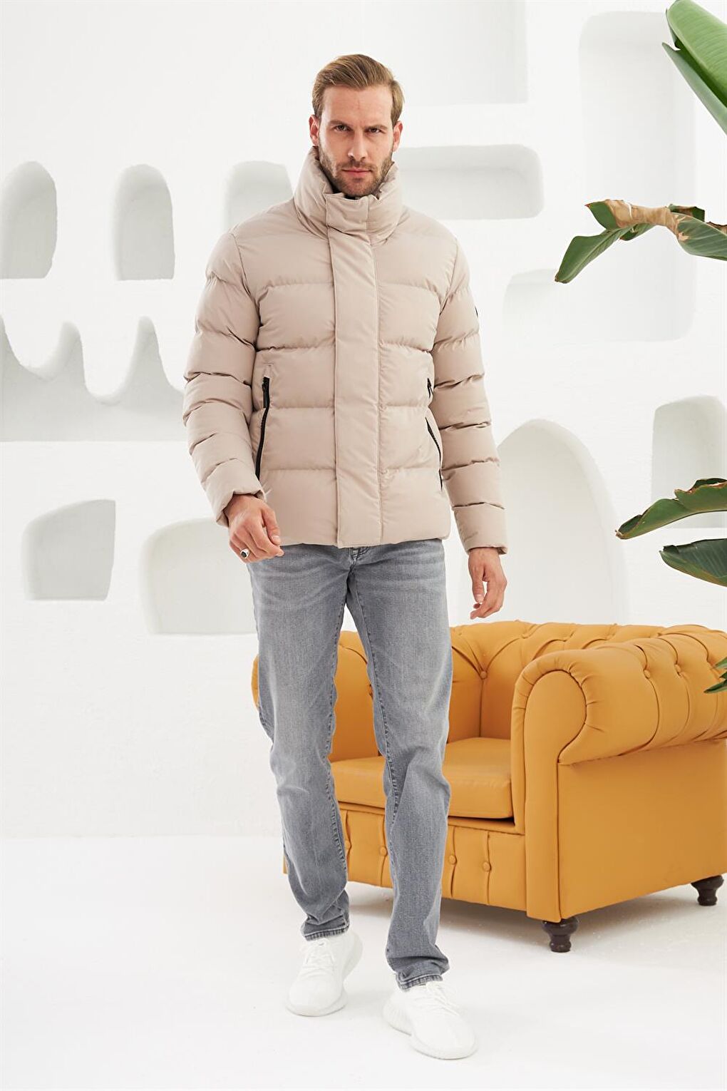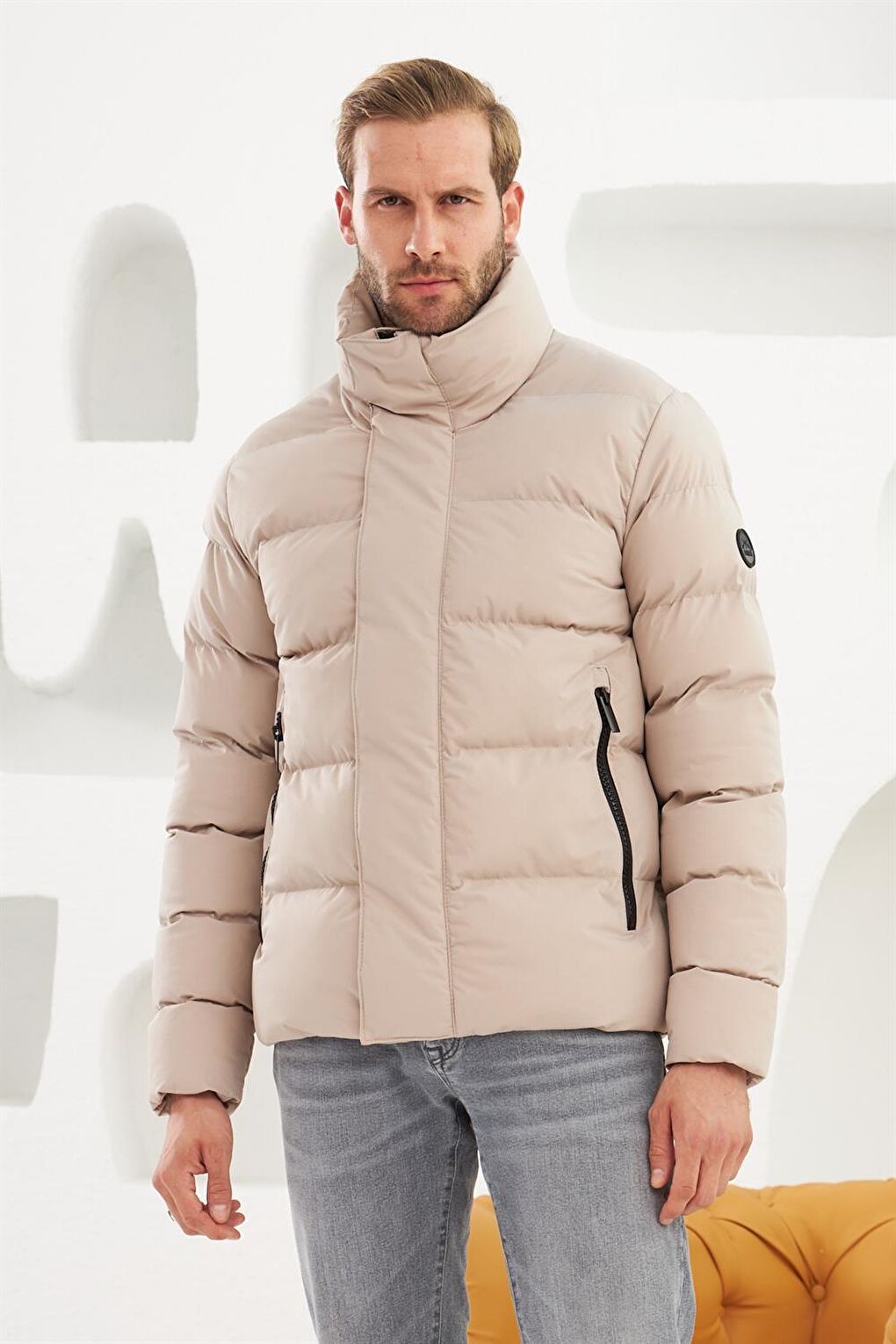 - نام : Erkek Dik Yaka Yağmur Ve Rüzgar Geçirmez Puffer Mont Taş