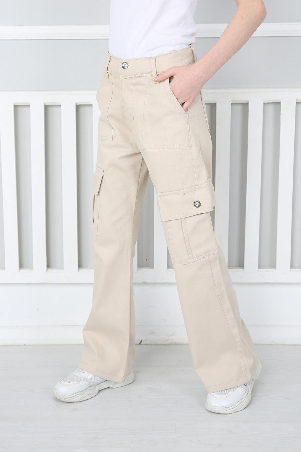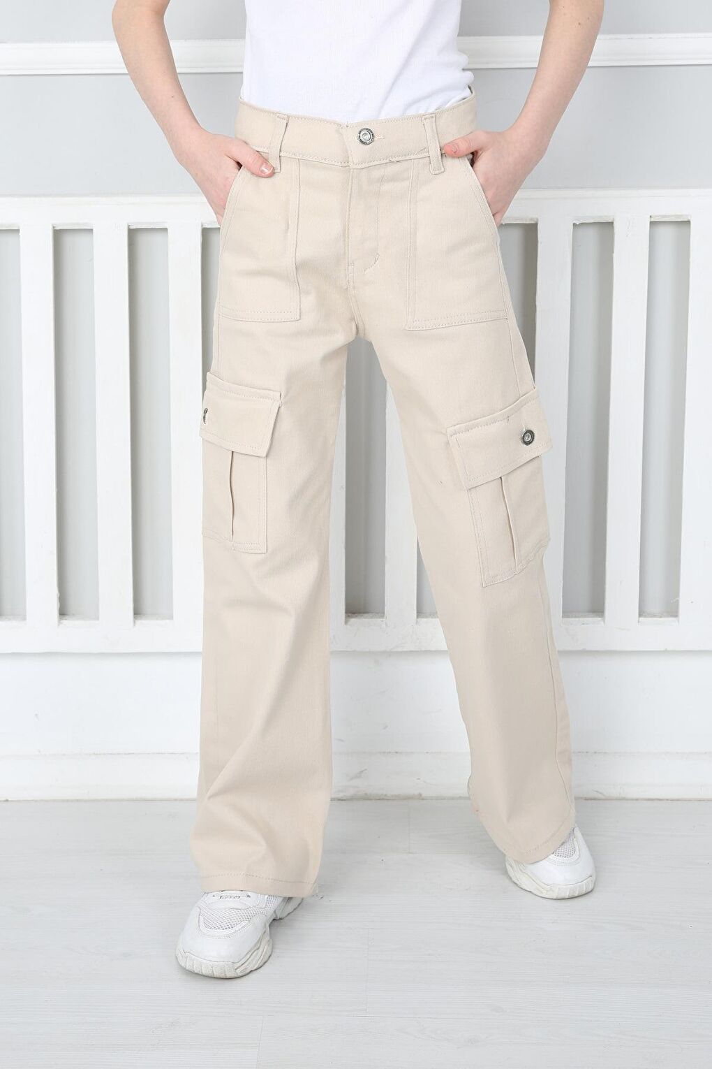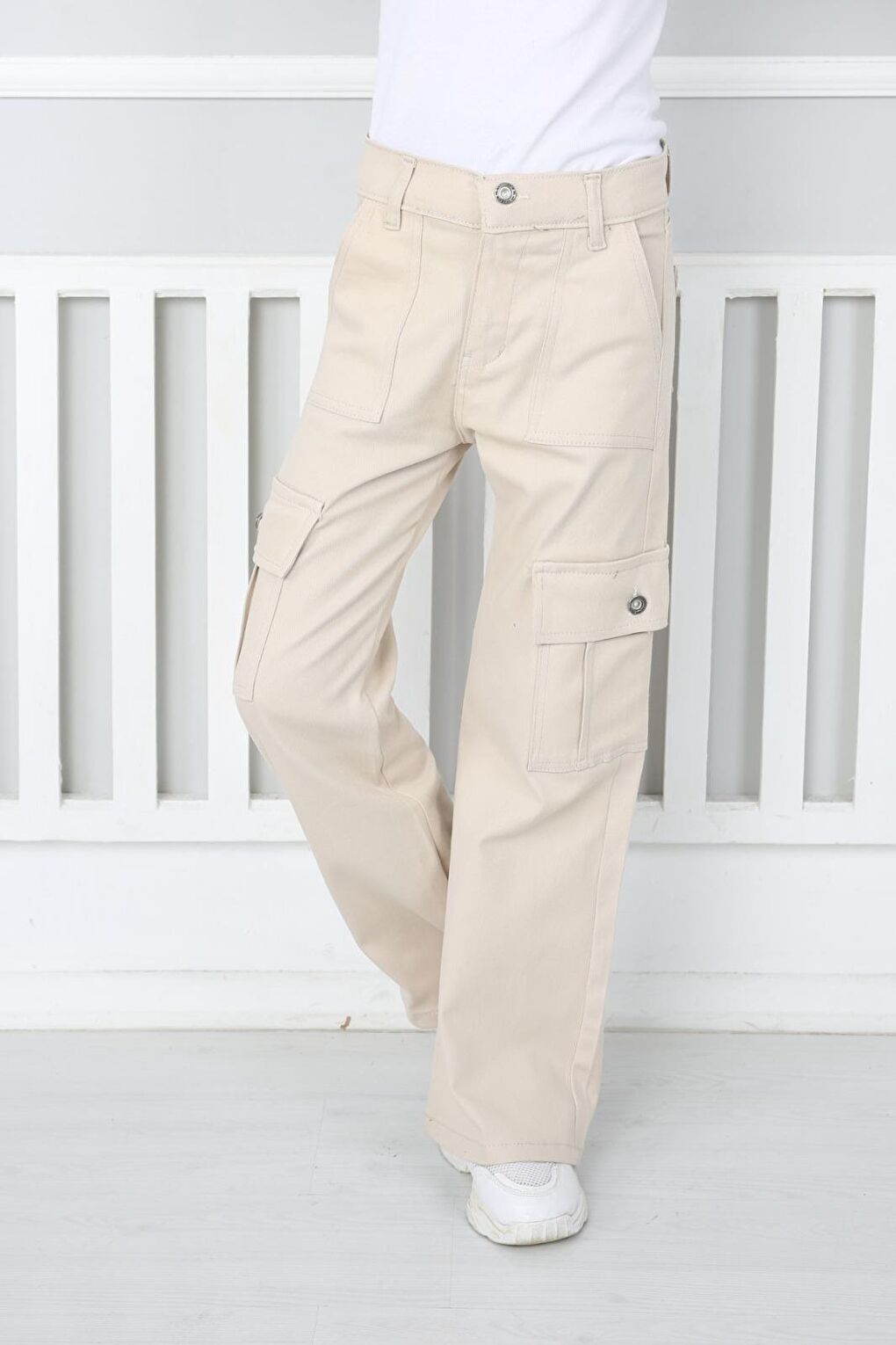 - نام : Kız Çocuk İspanyol Paça Keten Kargo Pantolon