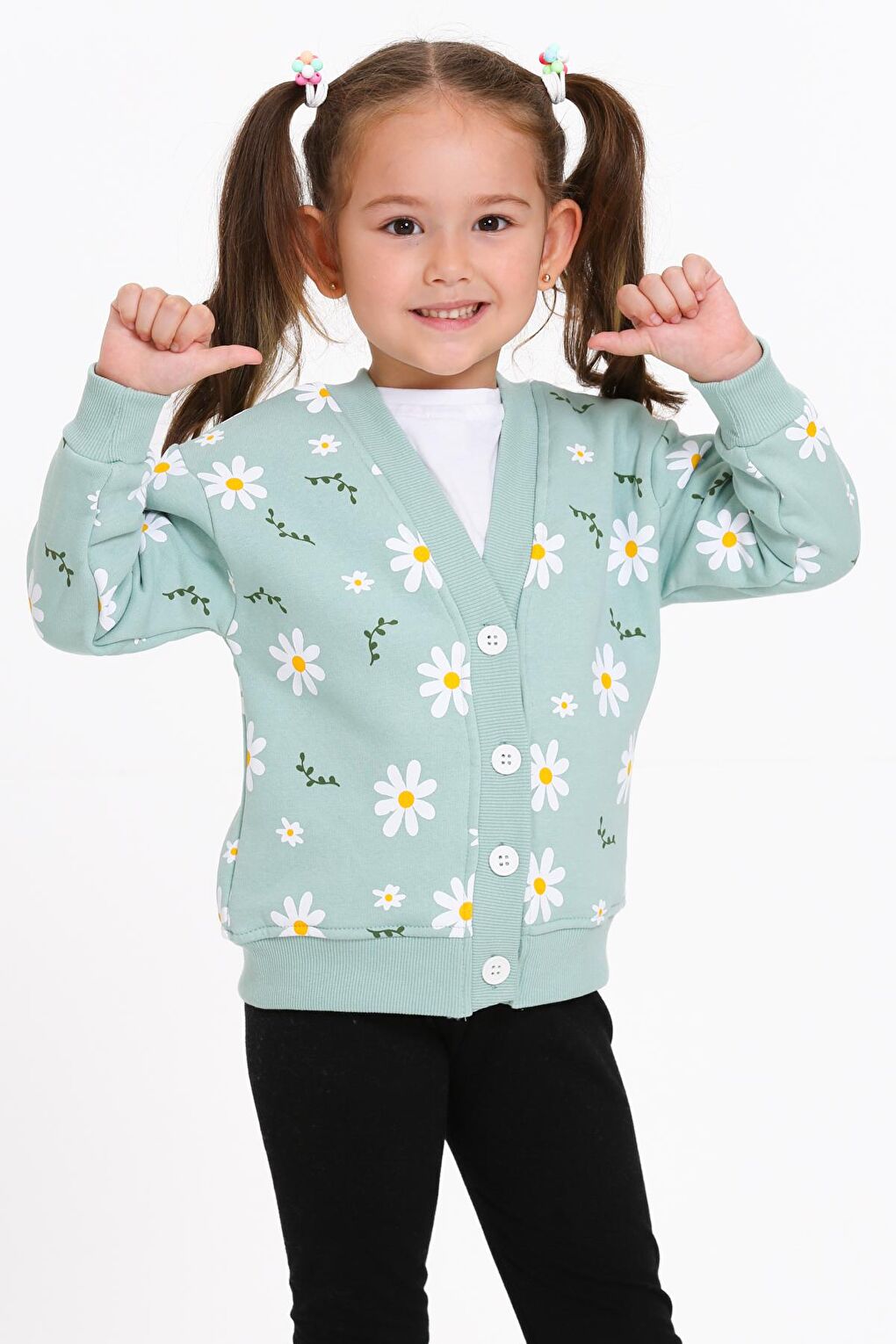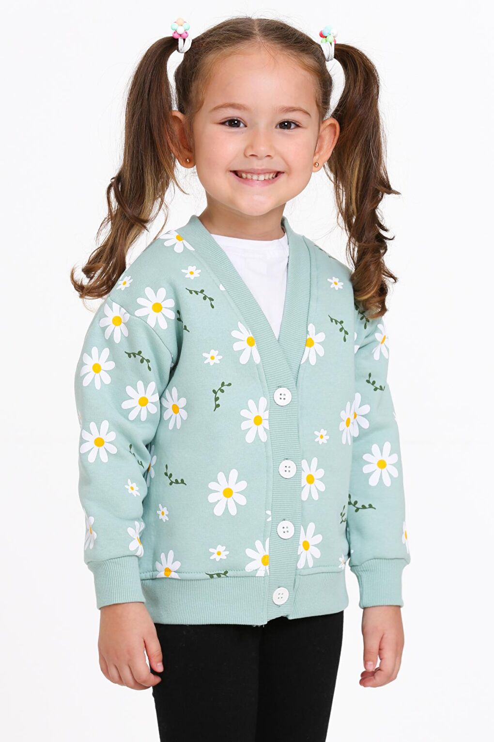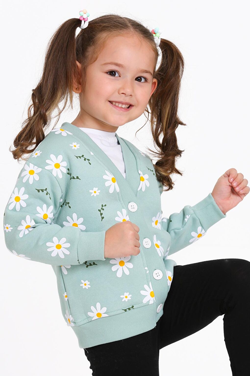 - نام : Kız Çocuk Mint Yeşili Papatya Baskı 1-5 Yaş Hırka - 23206-1