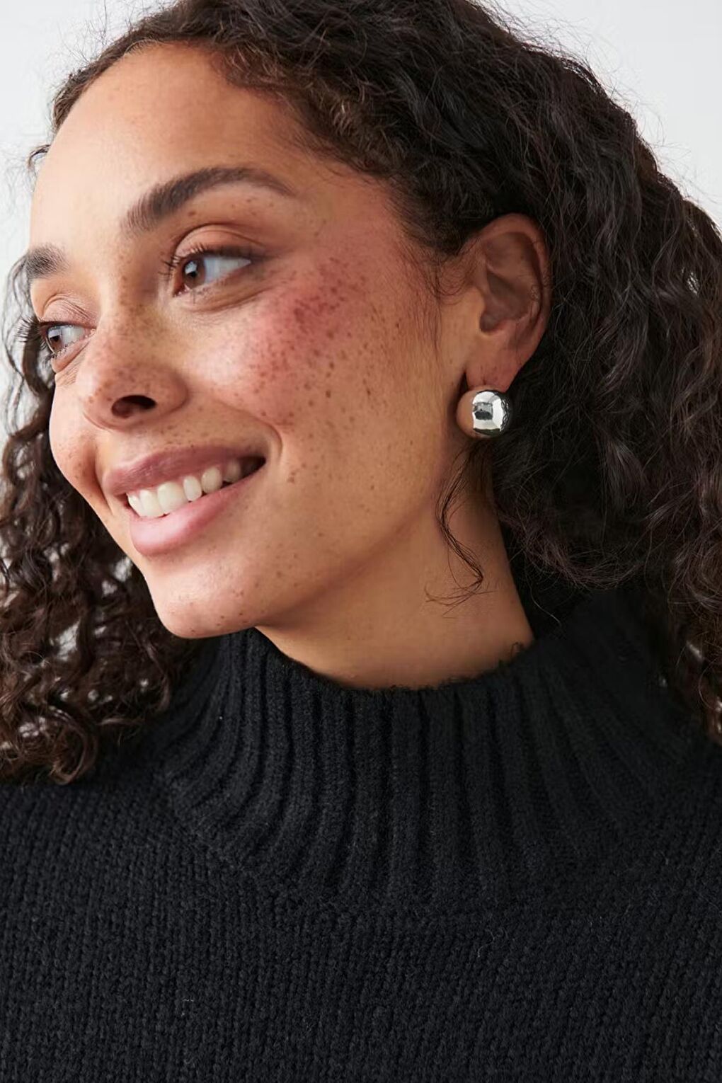 - نام : Gümüş Rengi Moon Dolgun Yuvarlak Çivi Küpe