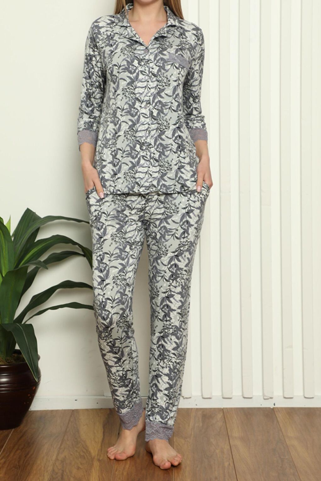 - نام : Kadın Pijama Takımı Cepli Düğmeli Likralı Dantelli