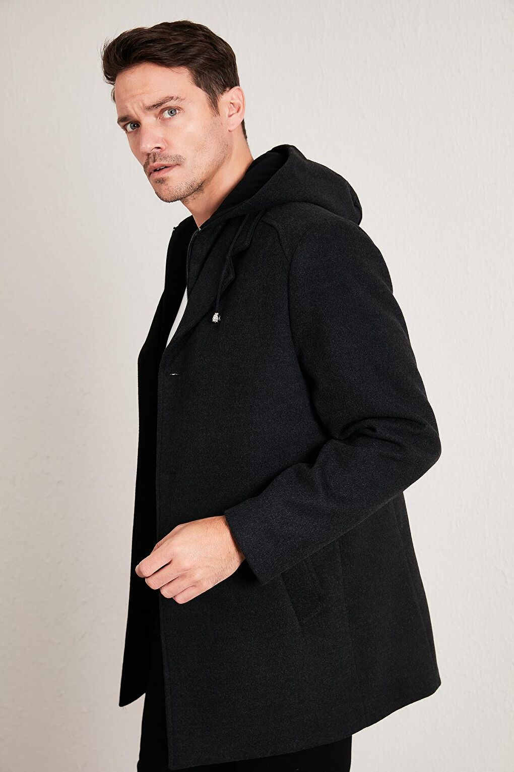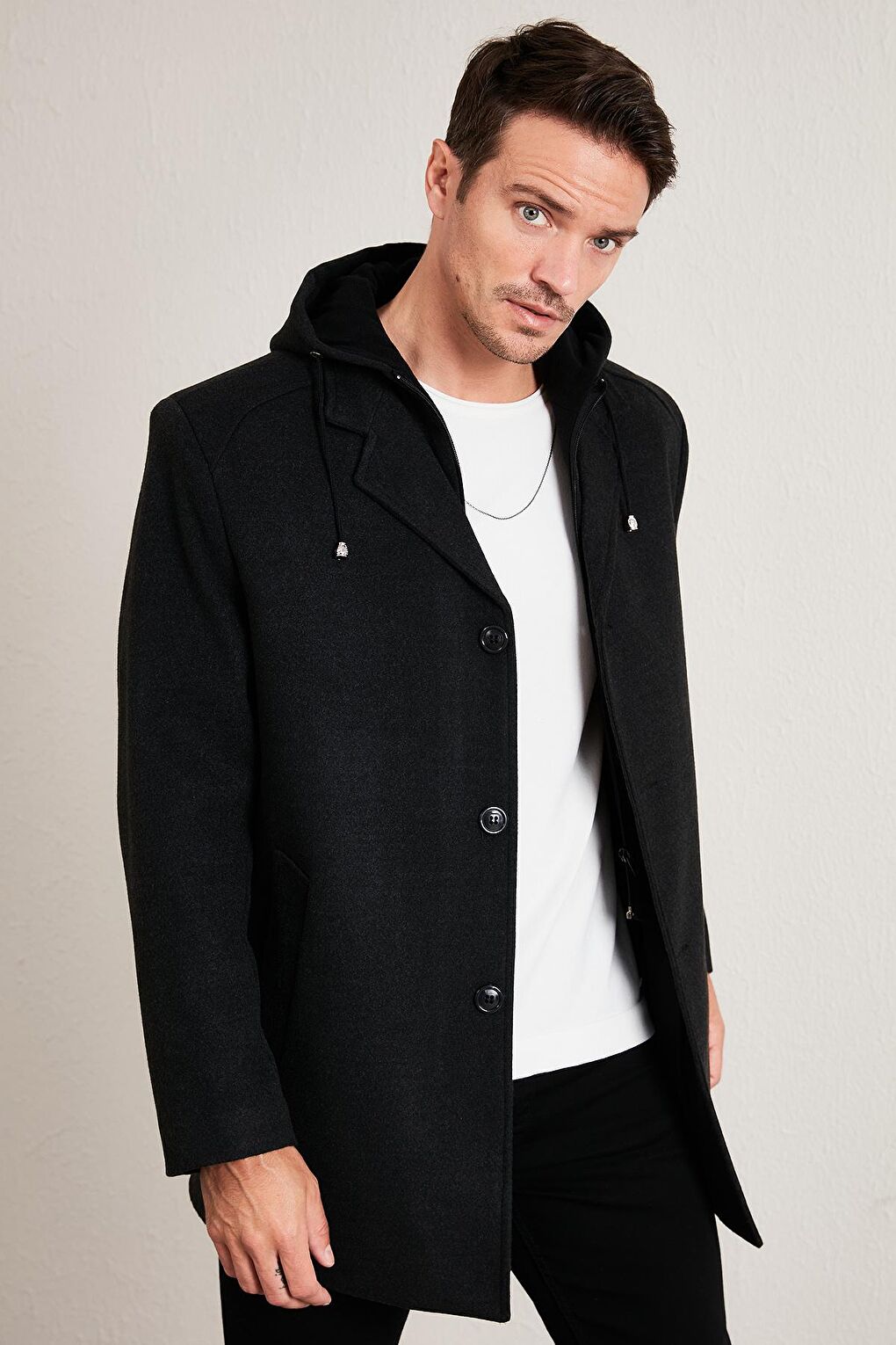 - نام : Çıkarılabilir Kapüşonlu Kırçıllı Slim Fit Kaşe Kaban