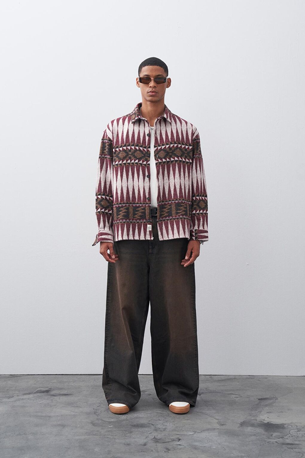 - نام : Bordo Otantik Desenli Oversize Oduncu Gömlek