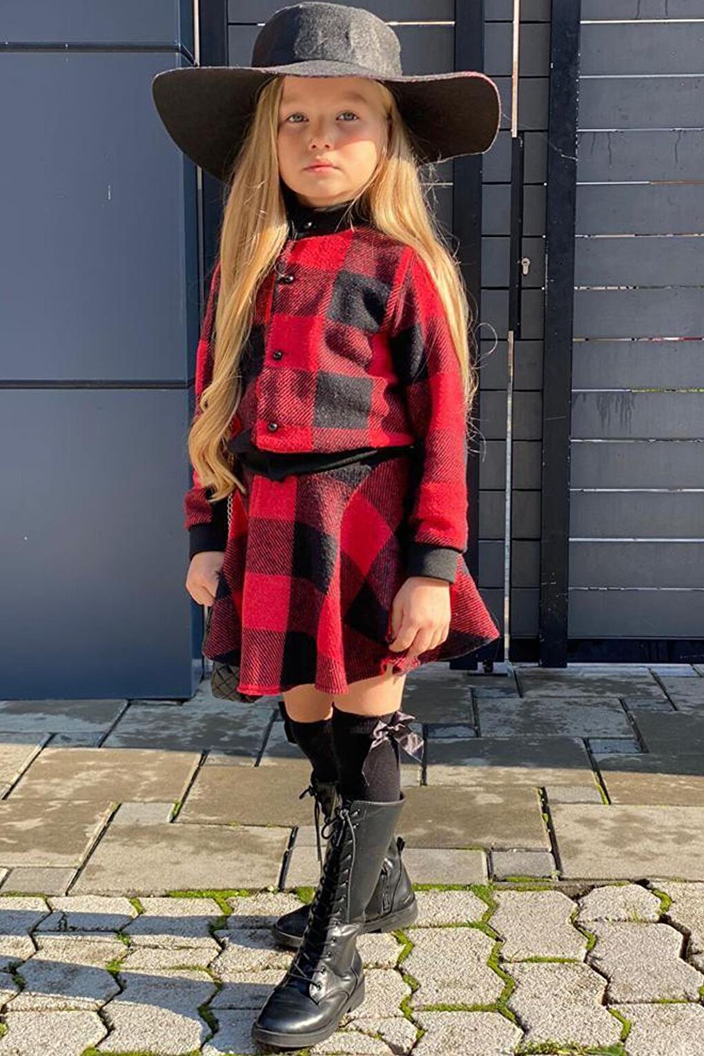 - نام : Kız Çocuk Şapkalı Kare Desenli Kırmızı Etekli Takım 3-12 Yaş