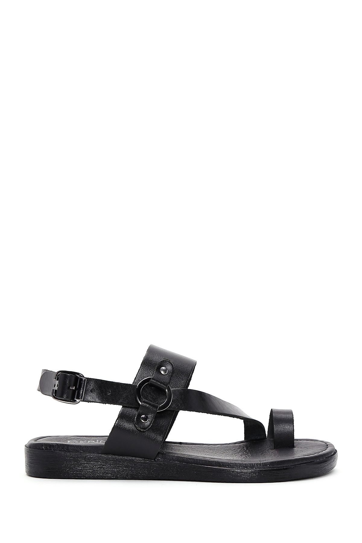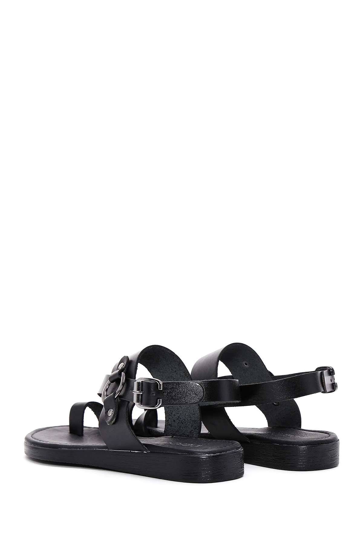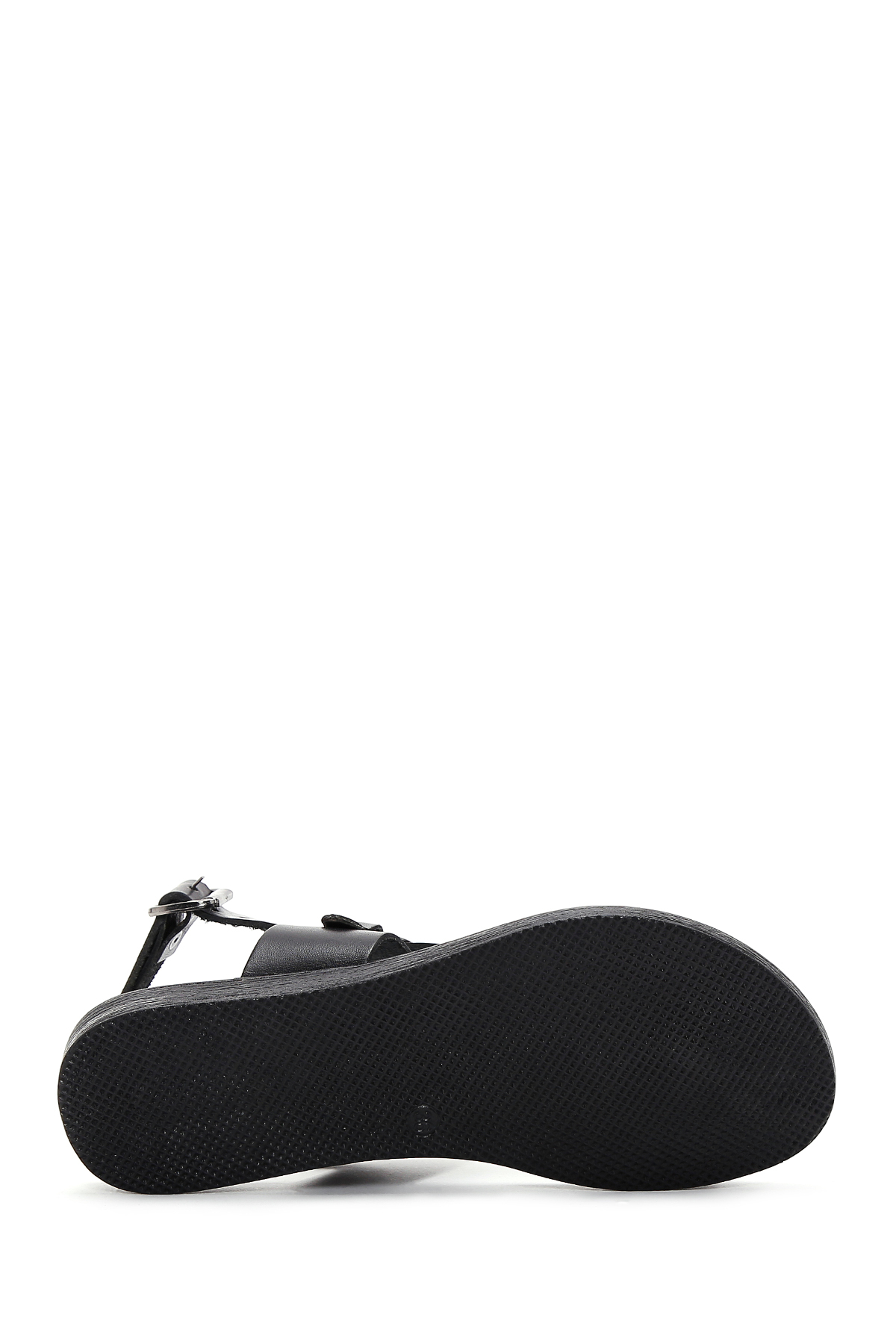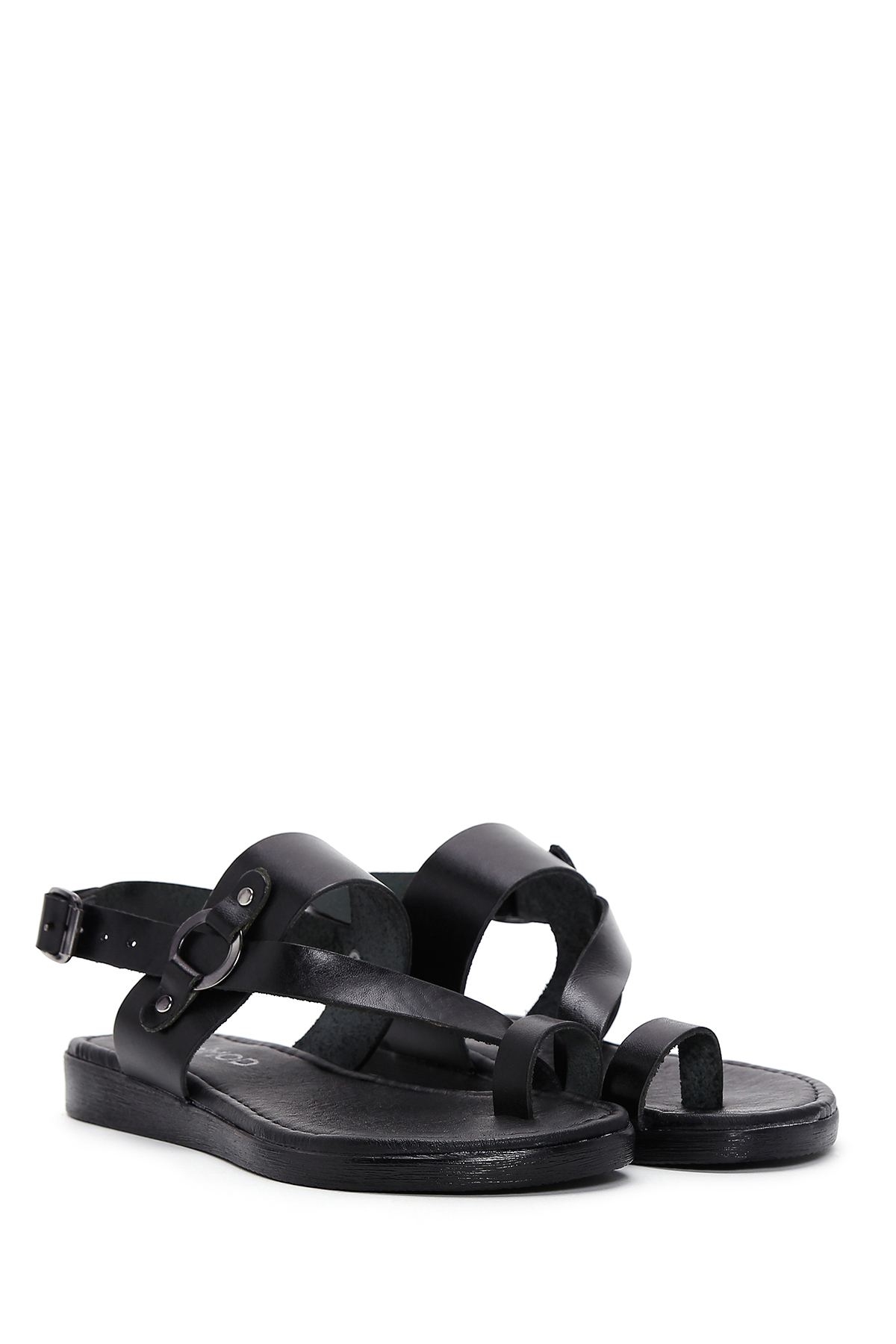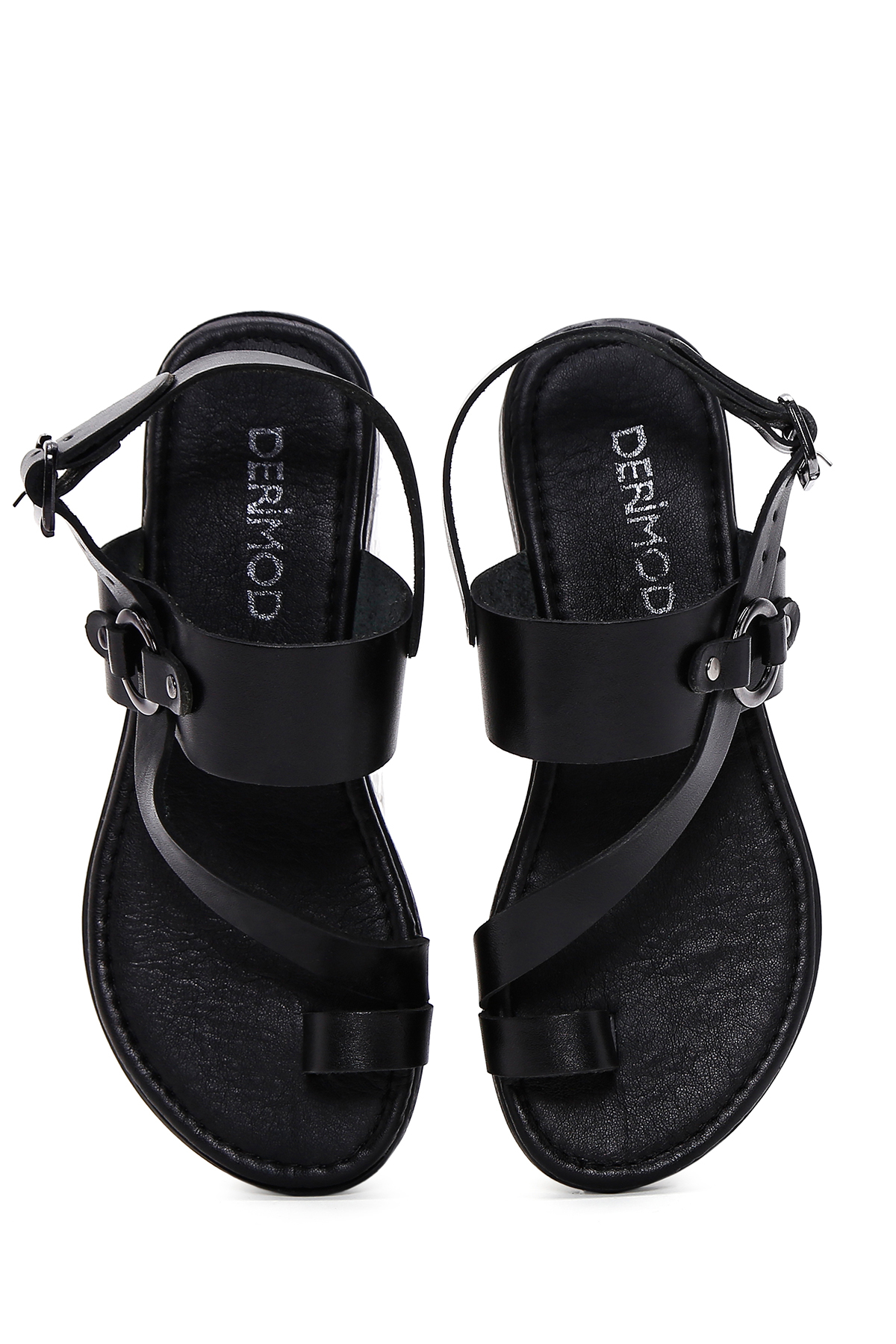 Kadın Siyah Bilekten Bantlı Deri Bodrum Sandaleti